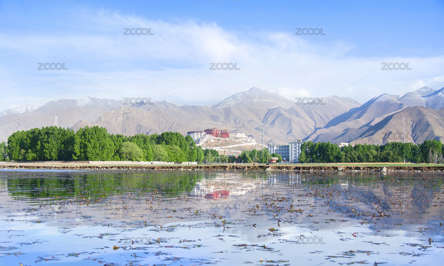 中国拉萨拉鲁湿地公园眺望布达拉宫