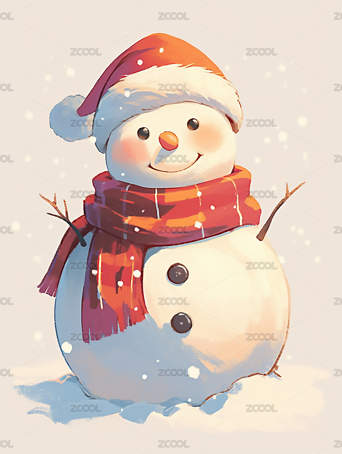 冬日小雪人卡通卡通可爱插画扁平贴纸