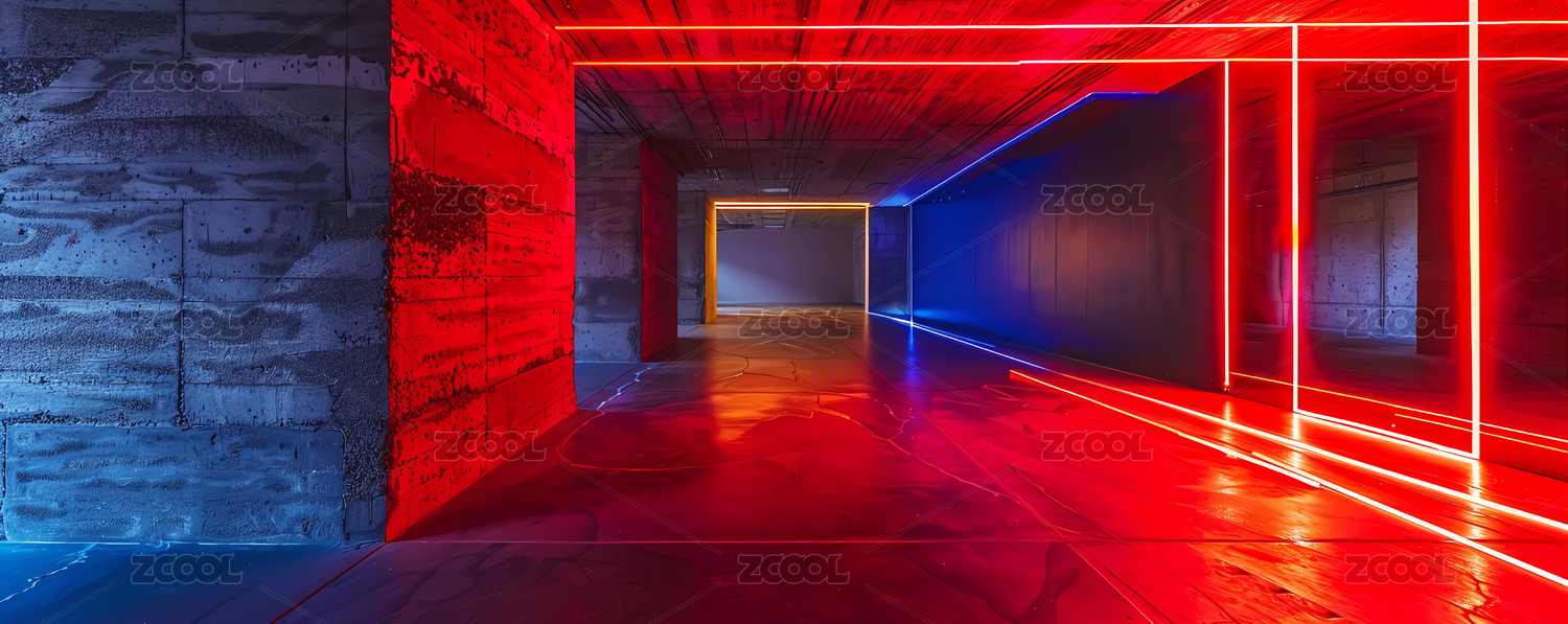 室内,建筑,墙面,灯光,霓虹灯,光束,光影,地面,三维,场景