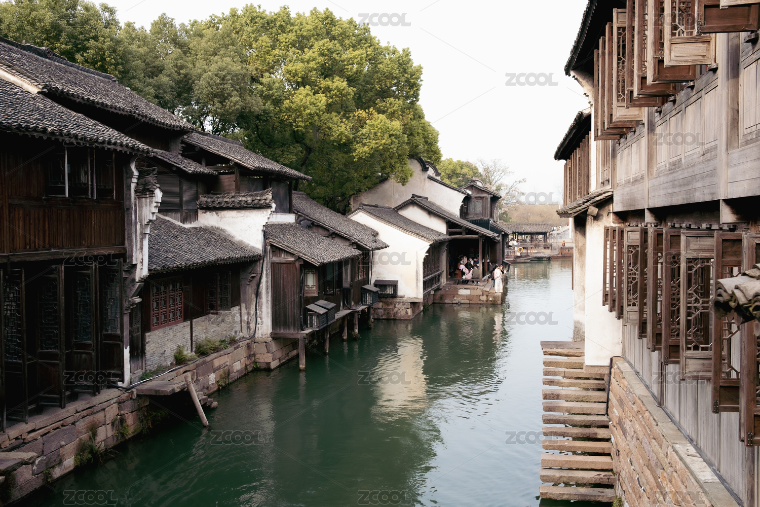 中国浙江嘉兴江南水乡乌镇古镇民居老建筑