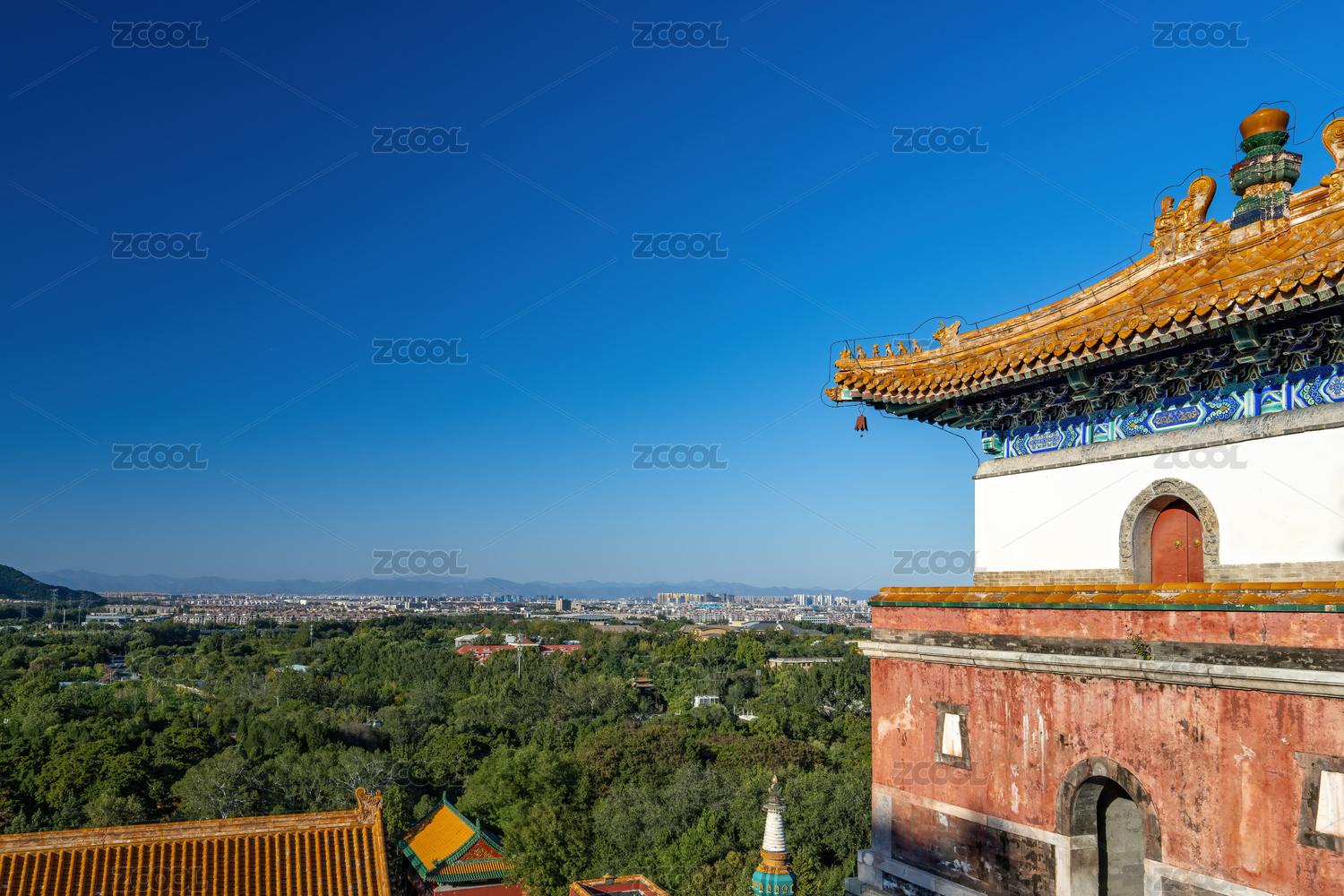 夏天北京颐和园万寿山视角看城市全景