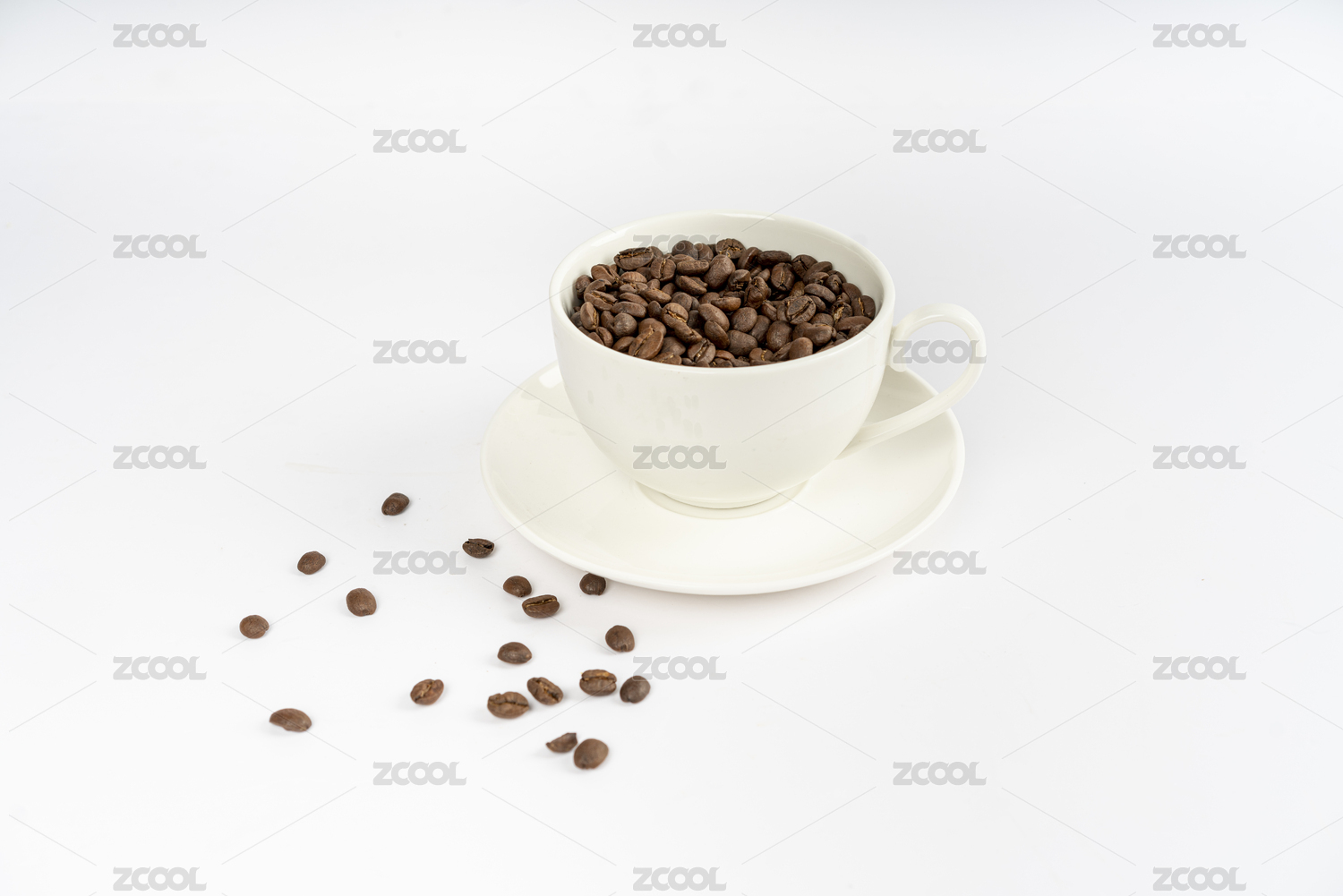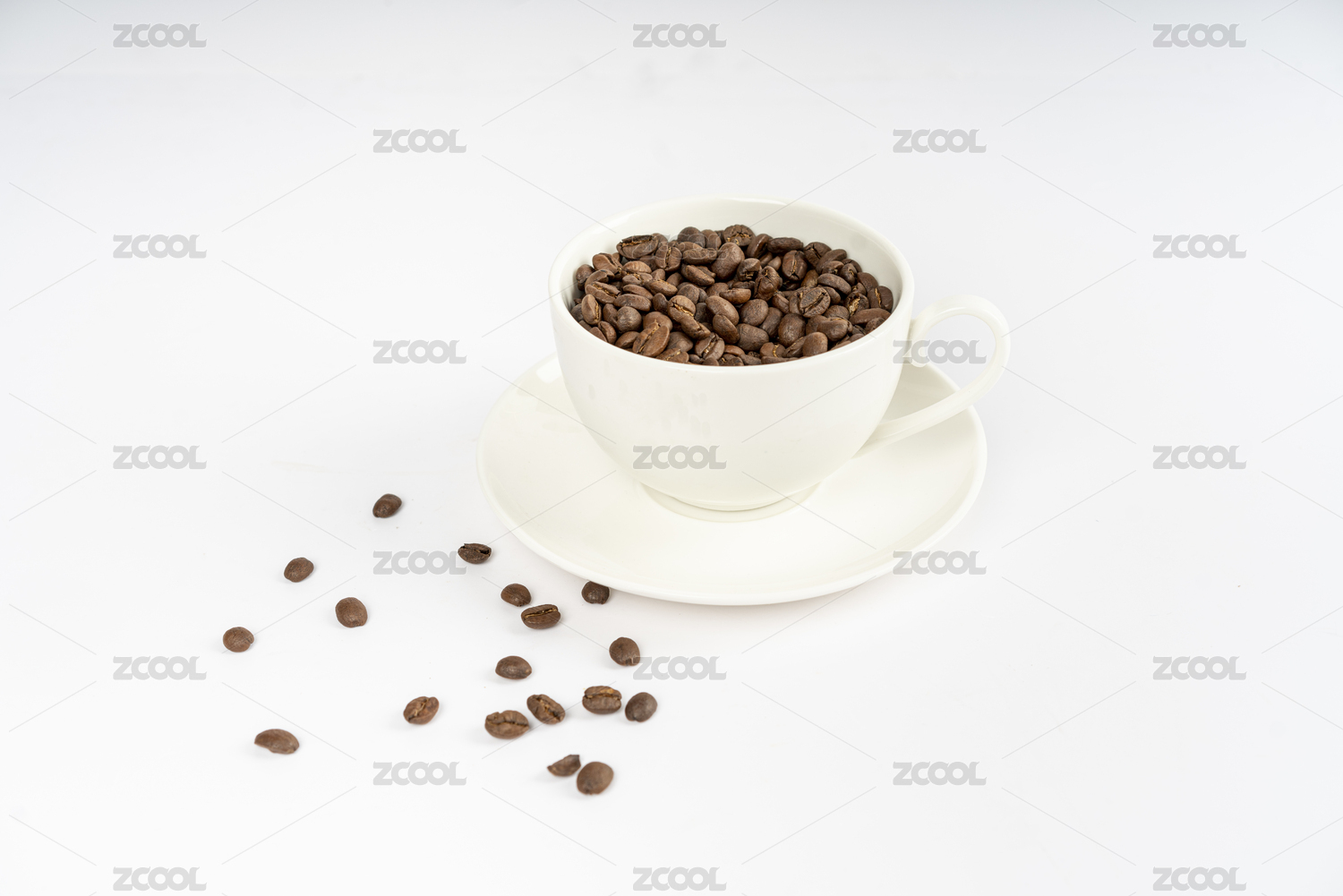 白色的咖啡杯和咖啡豆