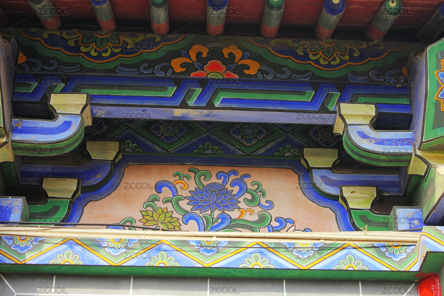 中国传统古建筑九踩斗拱及彩绘纹理图案特写