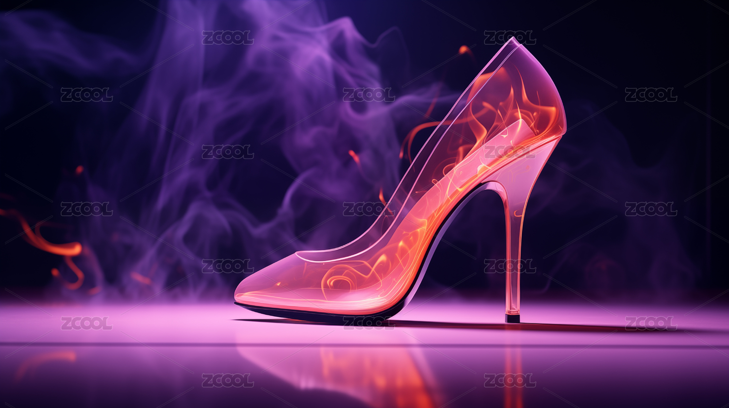 一个漂亮的艺术感玻璃高跟鞋3D场景素材