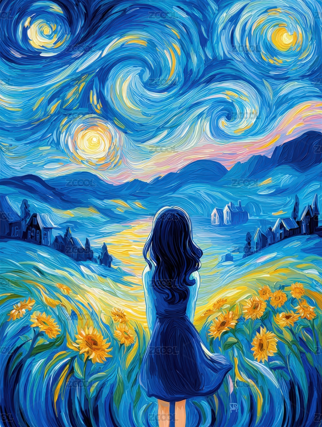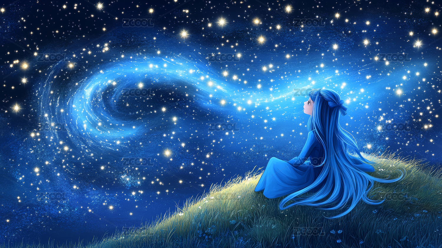 数码科技星空少女抽象海报网页PPT背景