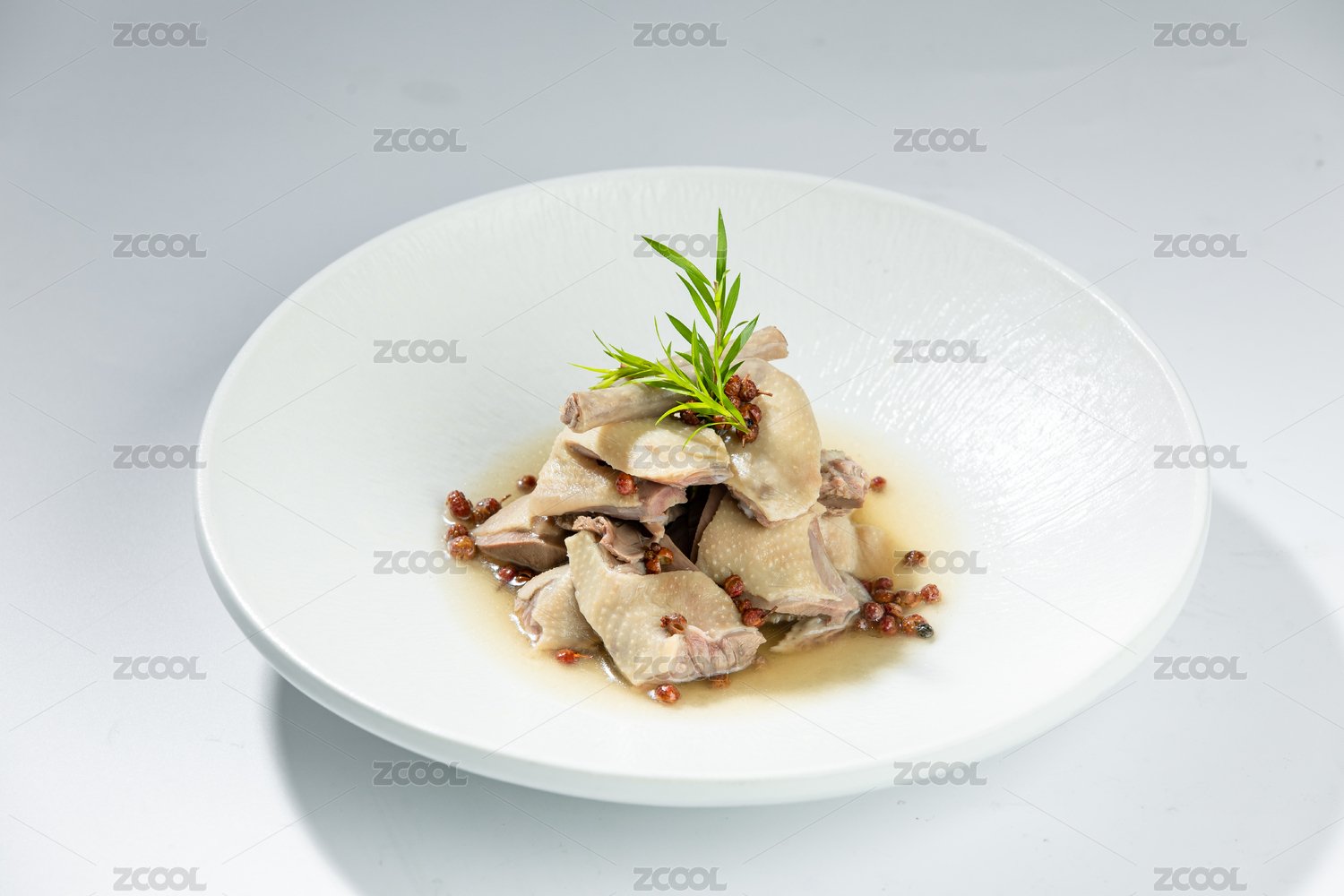 圆形白色瓷盘装的凉拌美味卤猪蹄