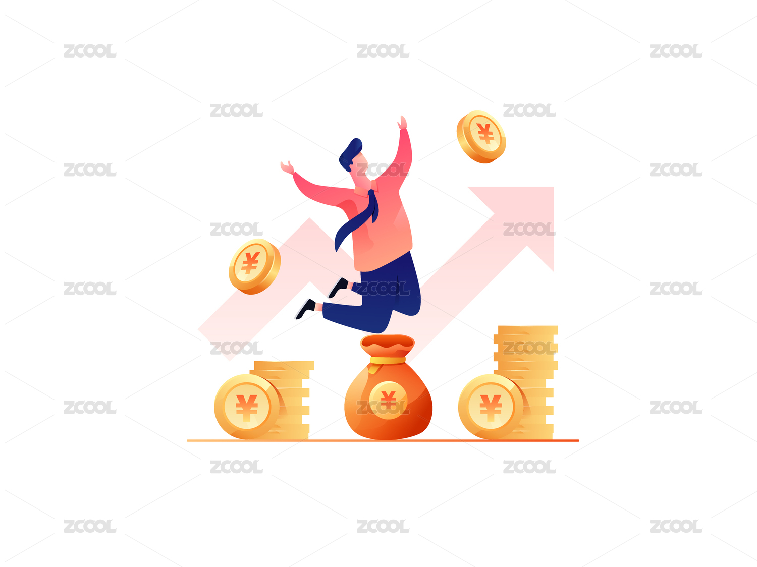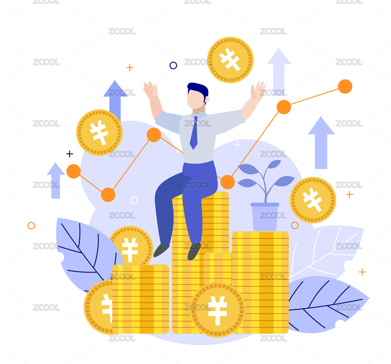 理财人物卡通财富积累场景