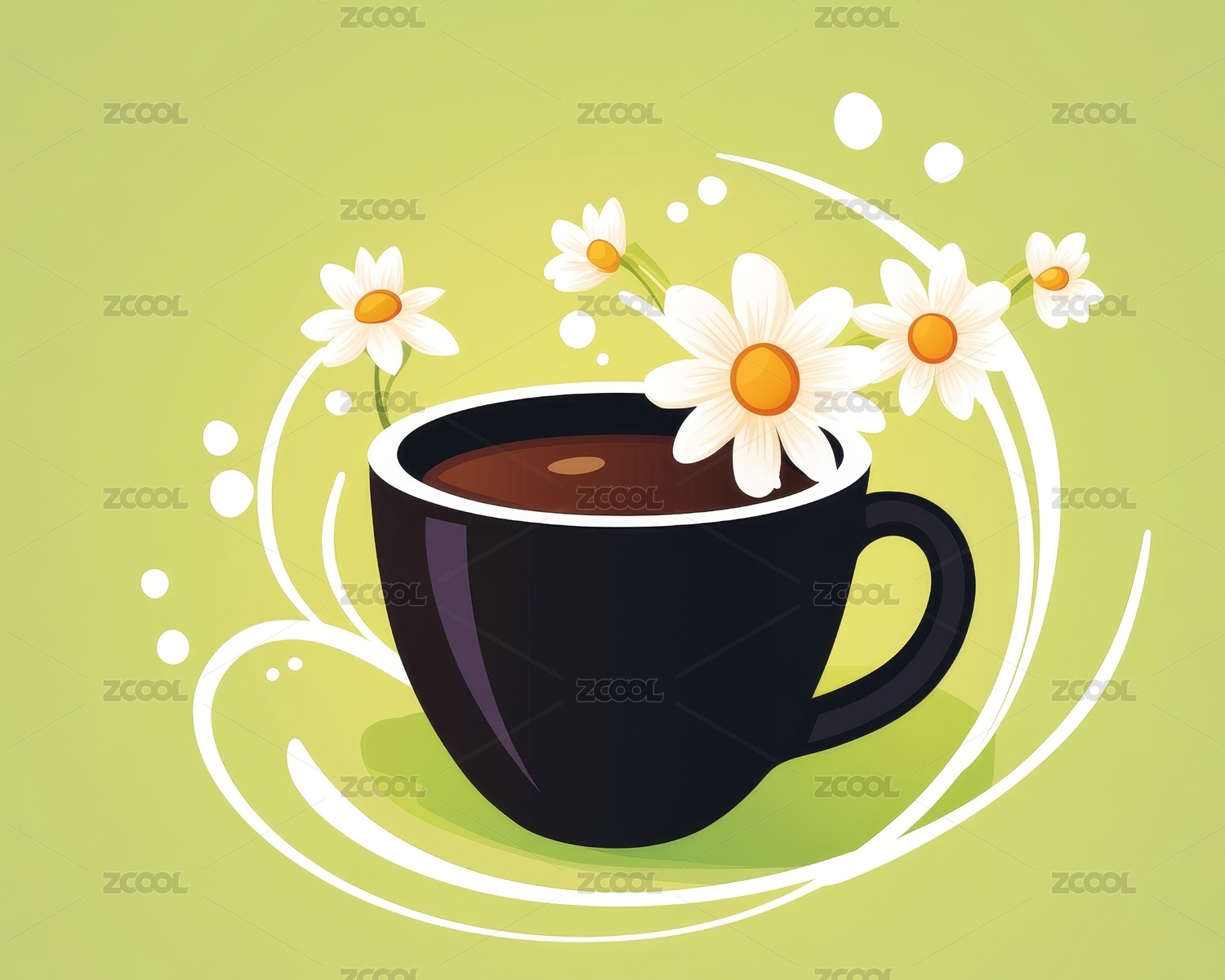 AIGC202402,洋甘菊,花朵,茶,杯子,植物,饮料,静物,瓷器