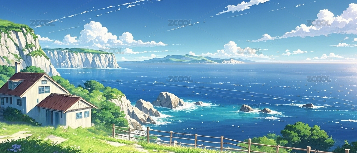 海边花园新海诚治愈插画