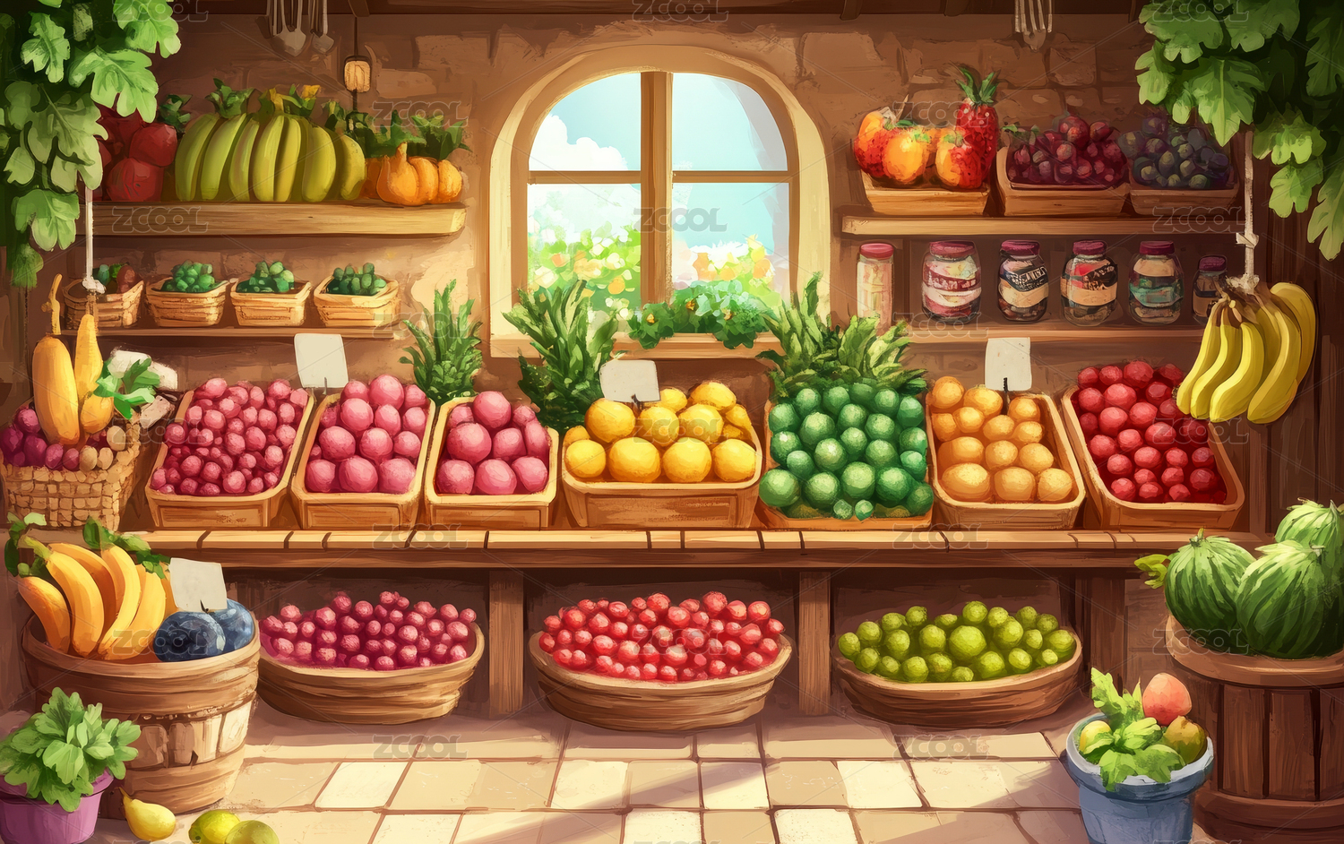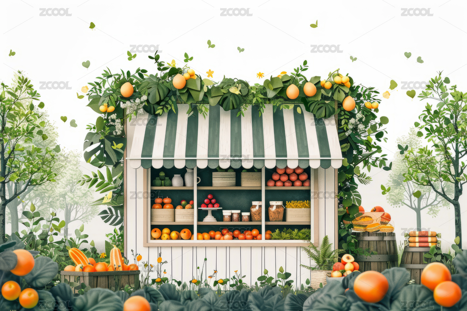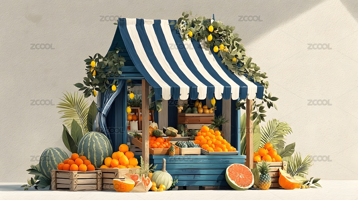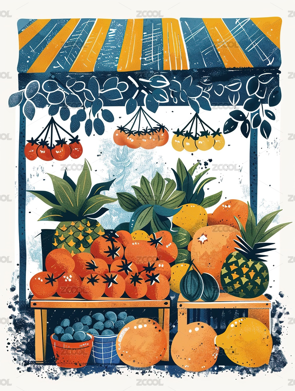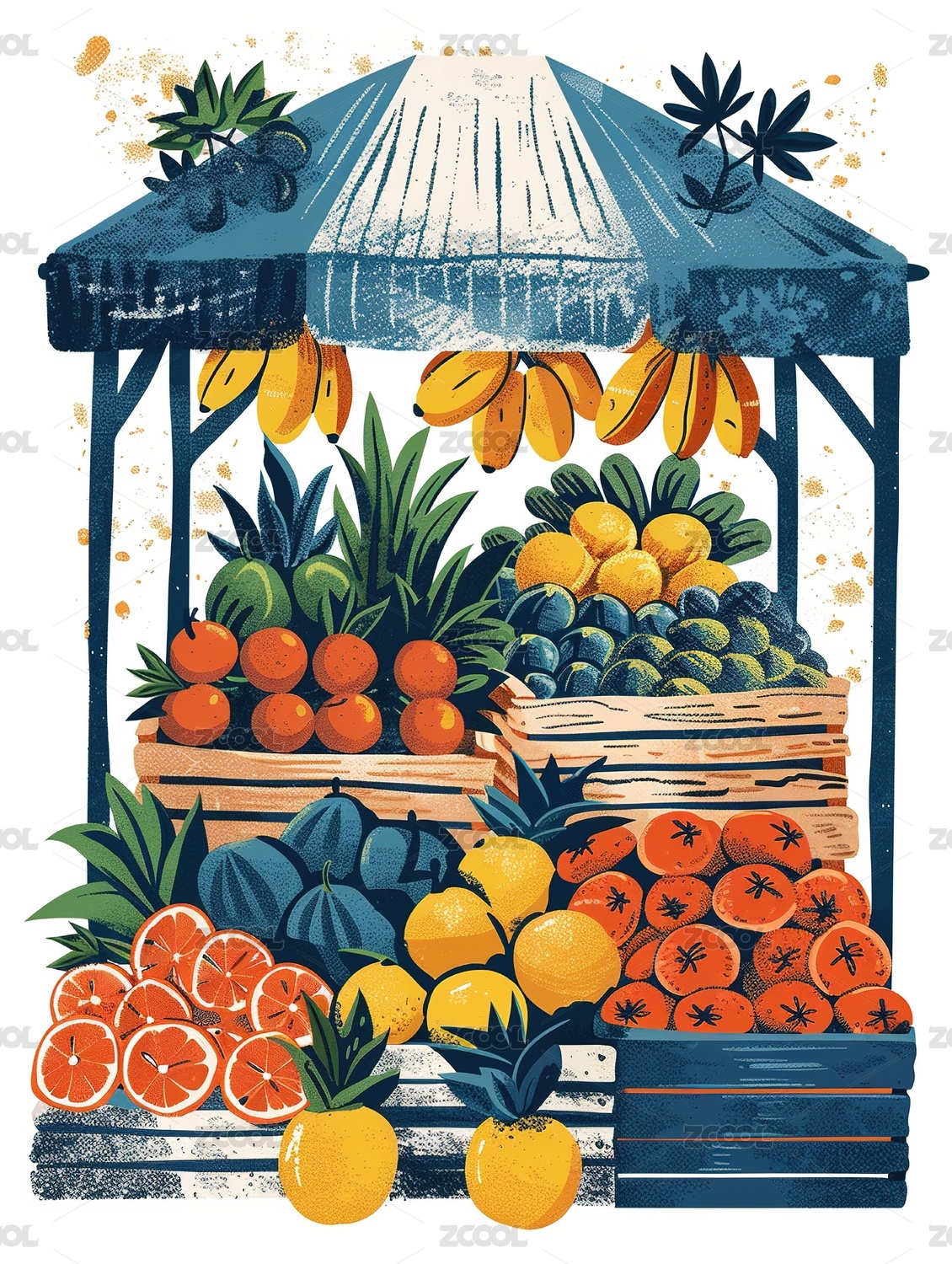 水果摊,绿色,果园,橙子,菠萝,香蕉,苹果,果树,木箱,花盆