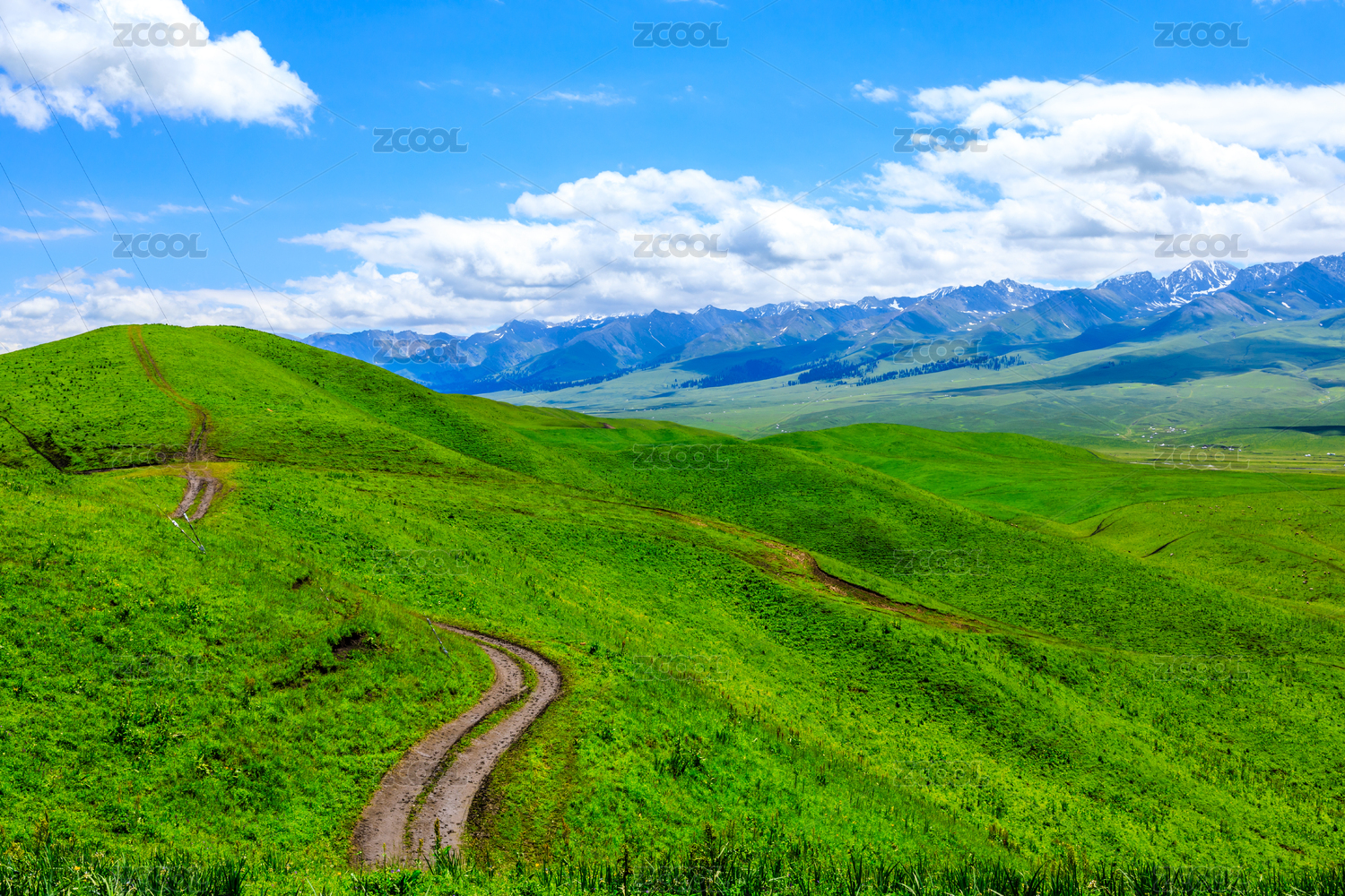 中国新疆那拉提草原的绿色山脉和道路