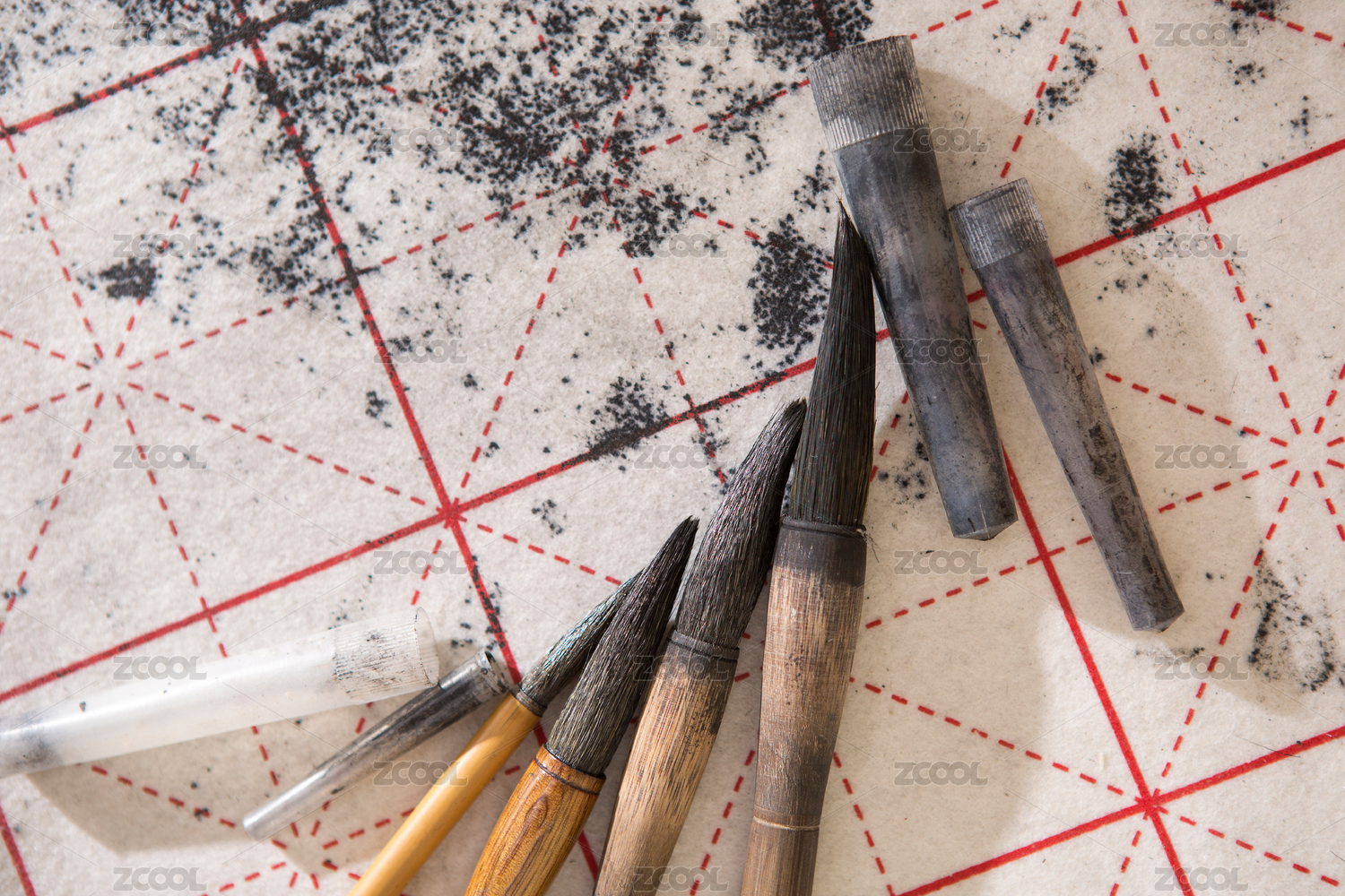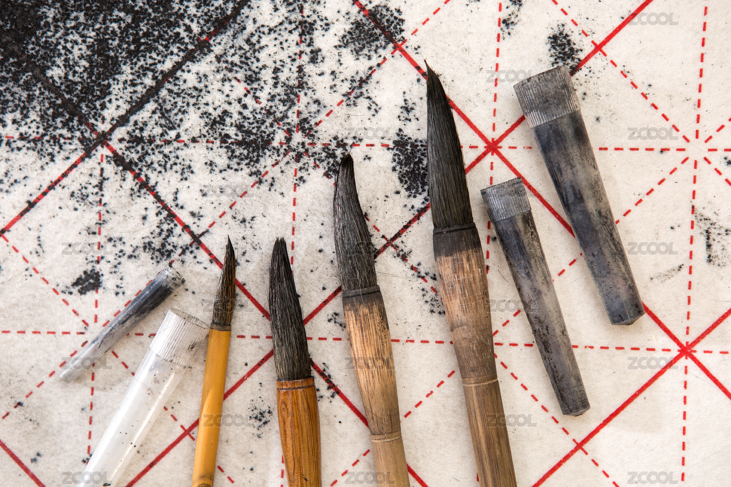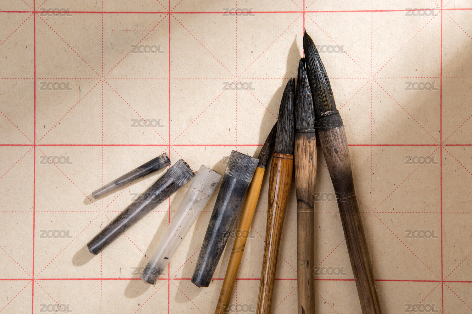 使用过废旧的中国传统书法毛笔