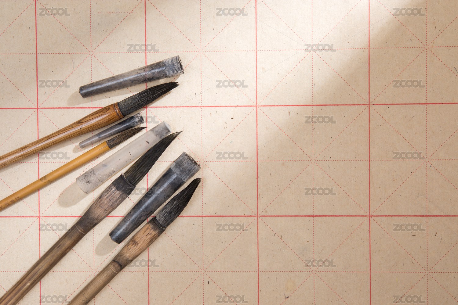 中国,使用,废旧,传统,书法,毛笔,黄色,格子,木,线