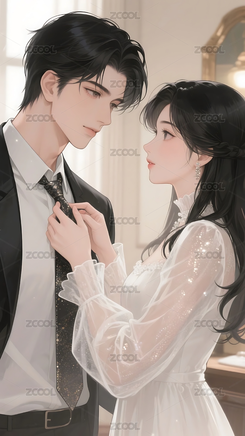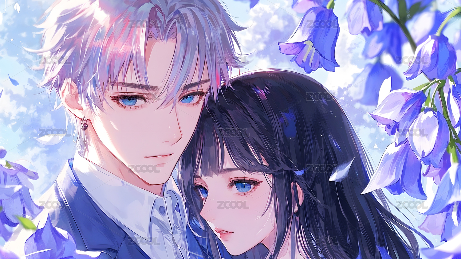七夕情人节结婚婚礼新郎新娘卡通插画