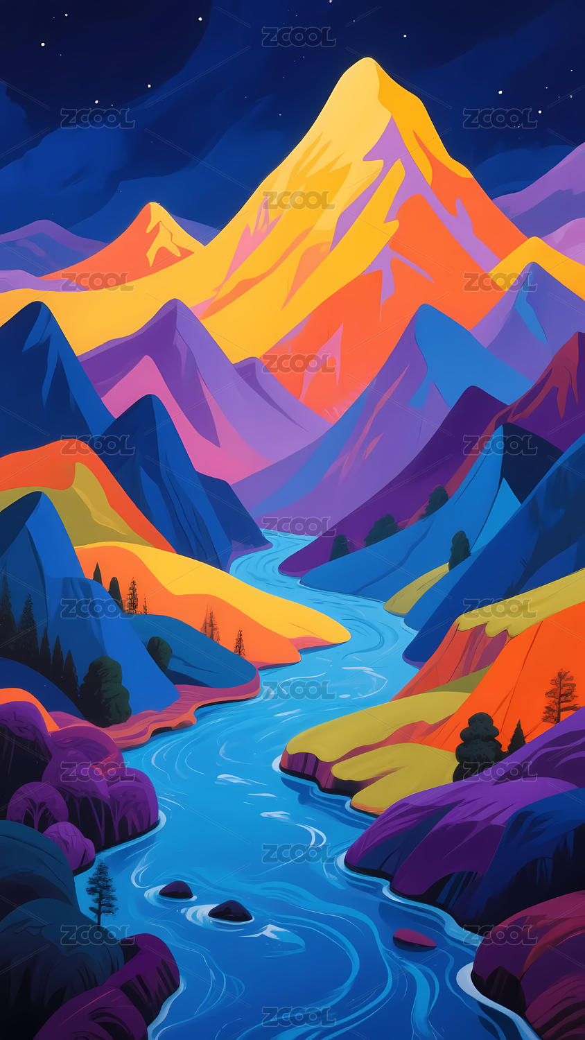 梦幻山水风景插画
