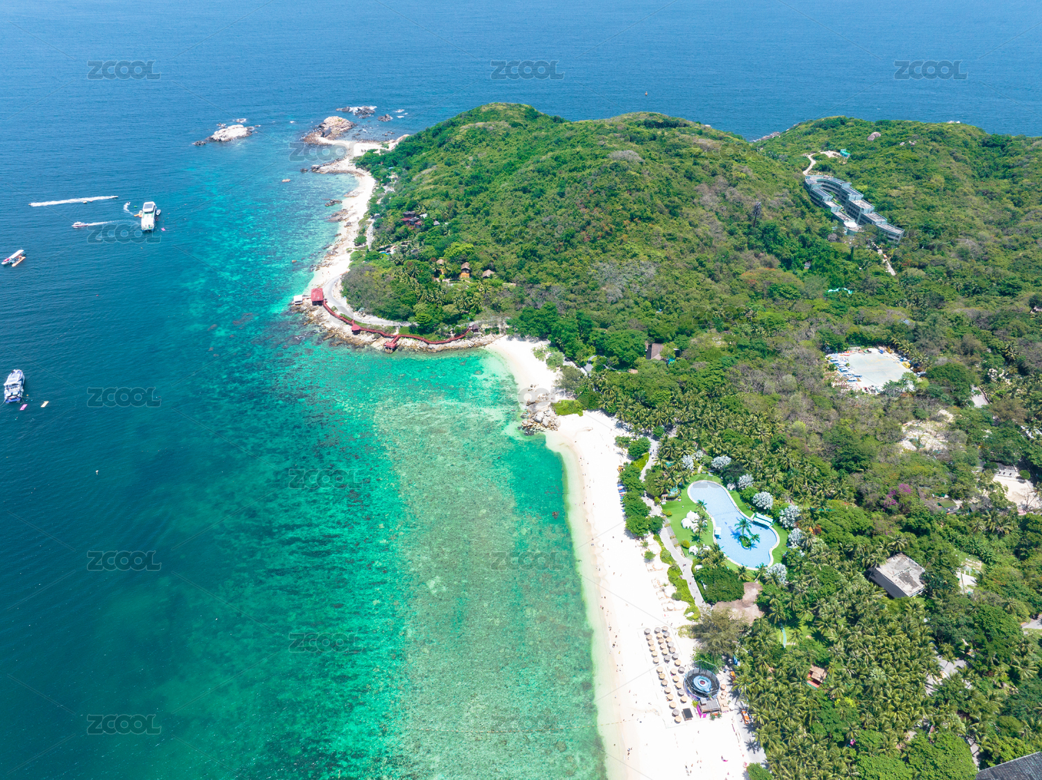 航拍海南陵水分界洲岛热带海滨蓝色大海岛屿