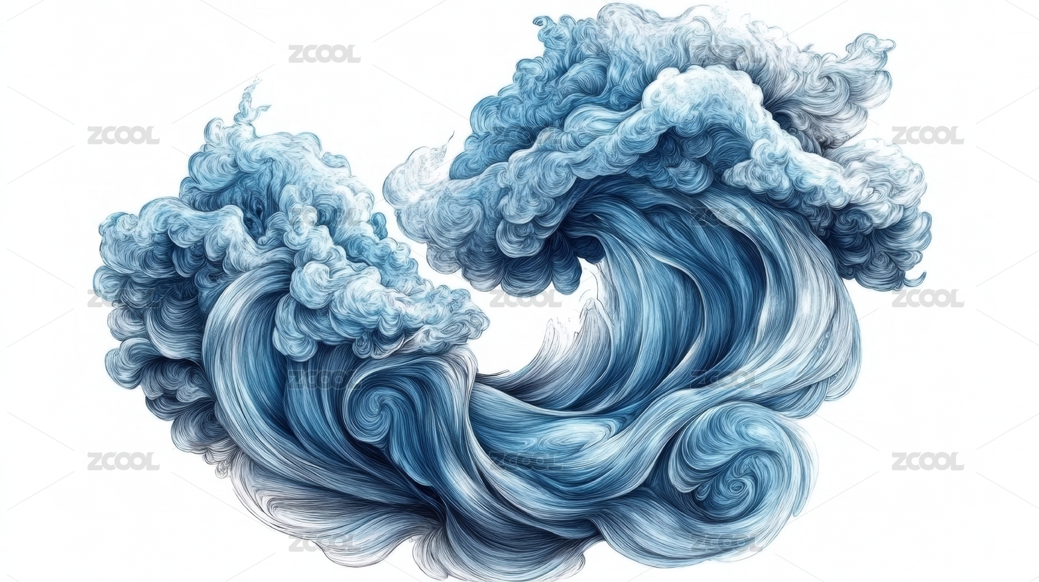 海浪图案水墨风装饰场景