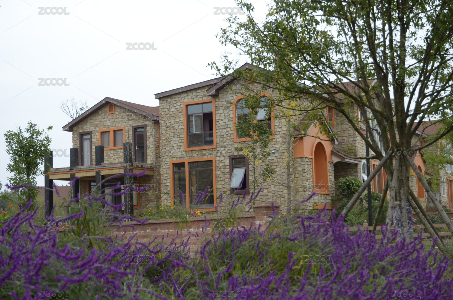 中国四川成都科玛小镇欧式风情建筑阁楼特写