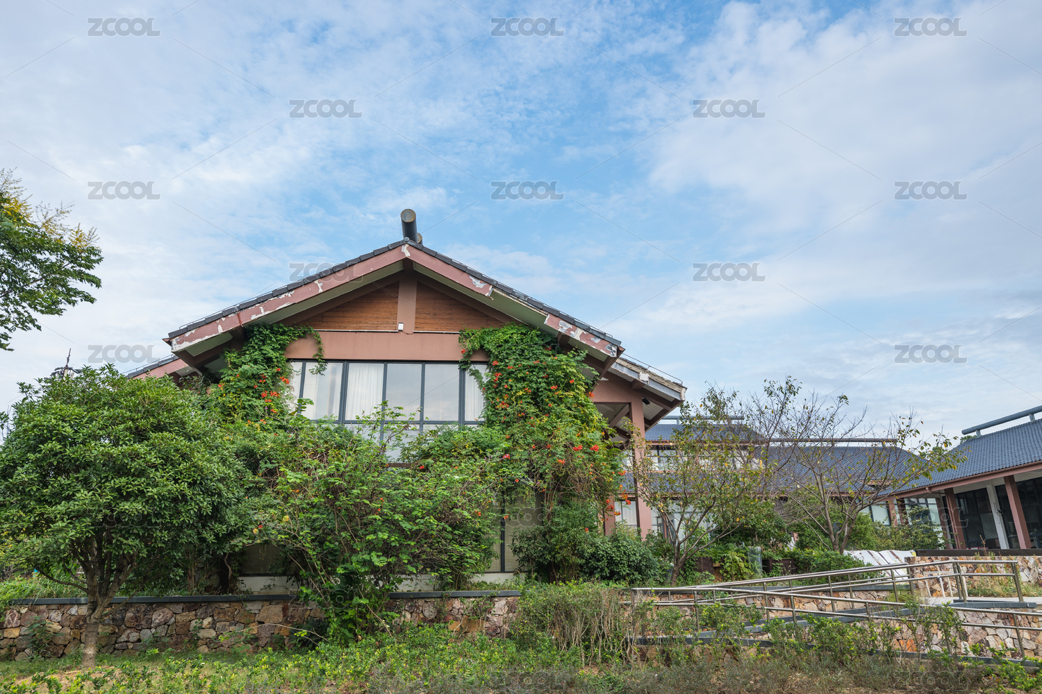 四川成都东安湖溪峰岛川西村庄风格食宿场所