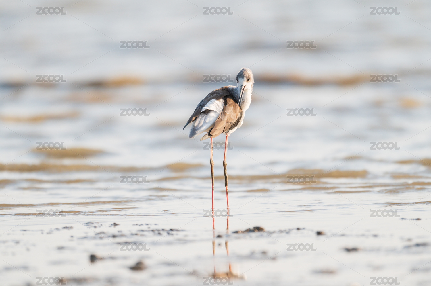 深圳湾公园滩涂上觅食的黑翅长脚鹬