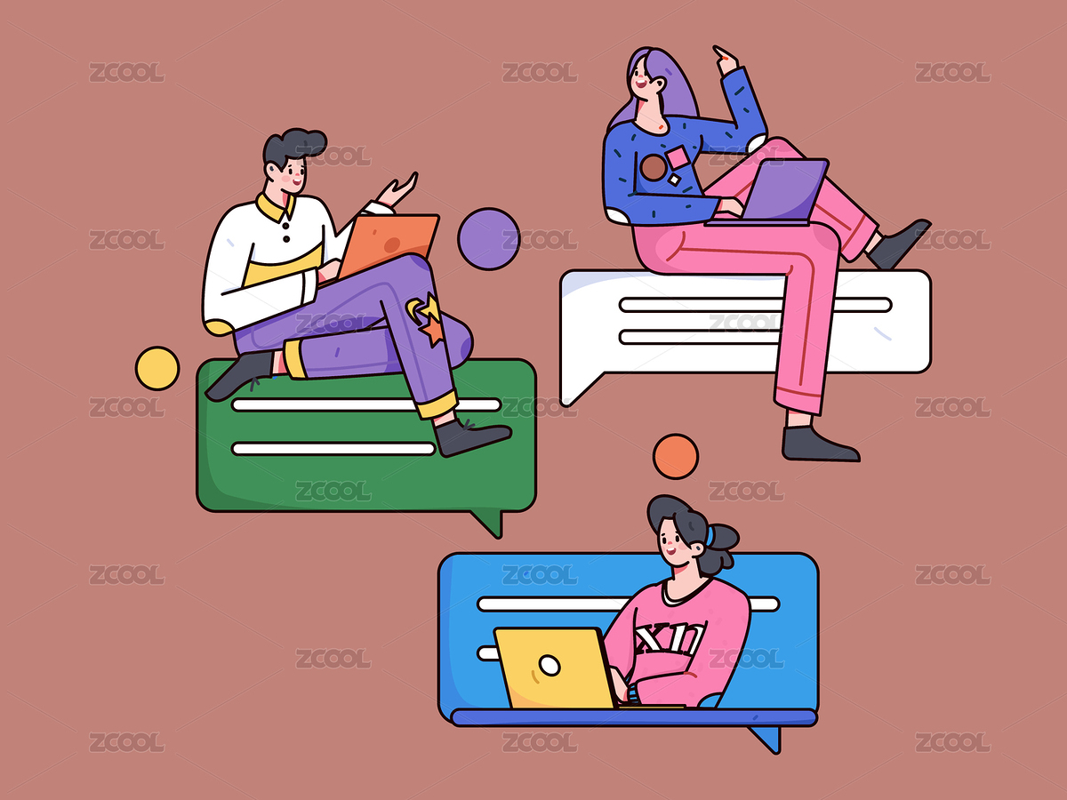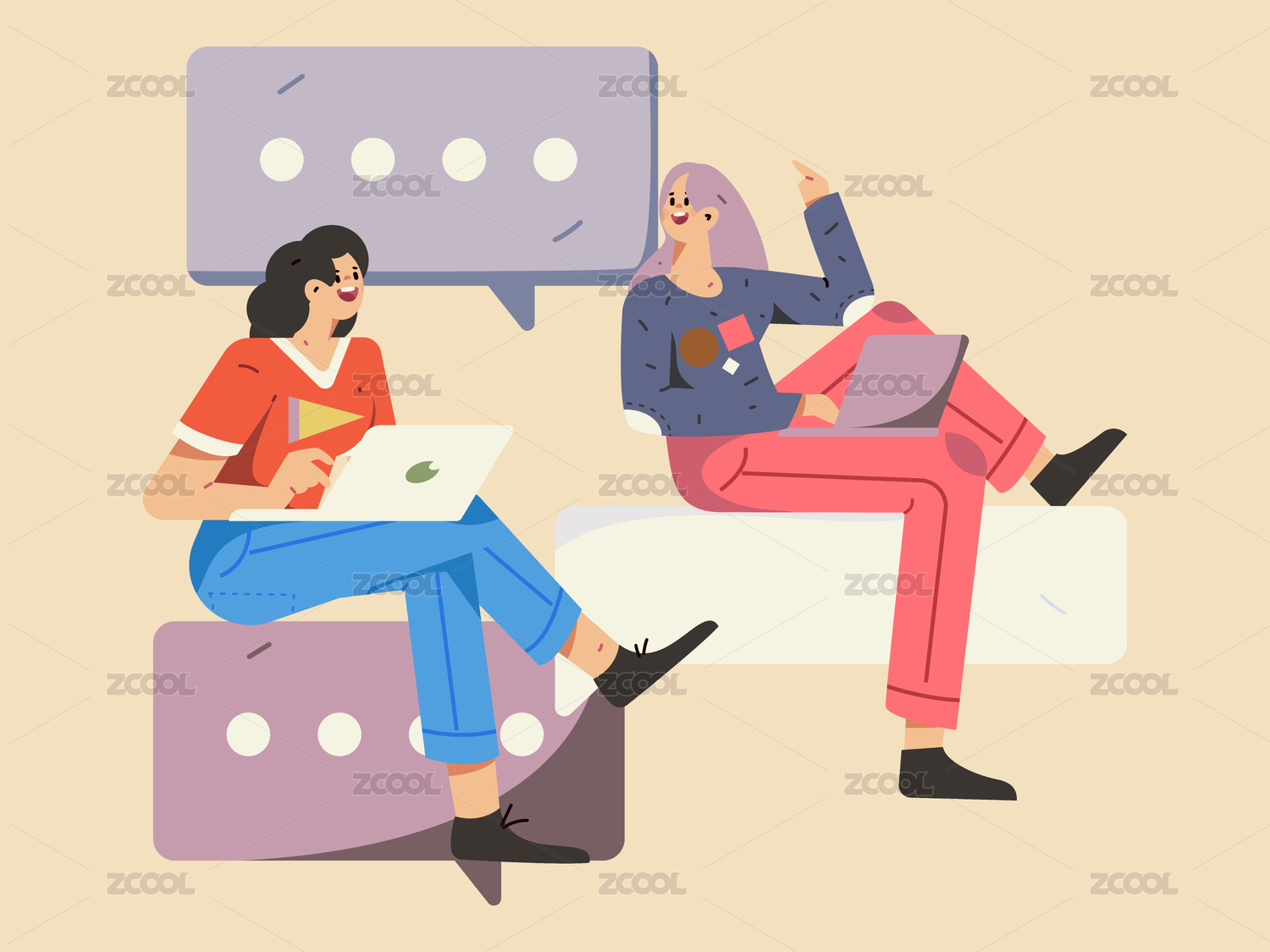 虚拟的人物社交沟通概念商业扁平矢量手绘插