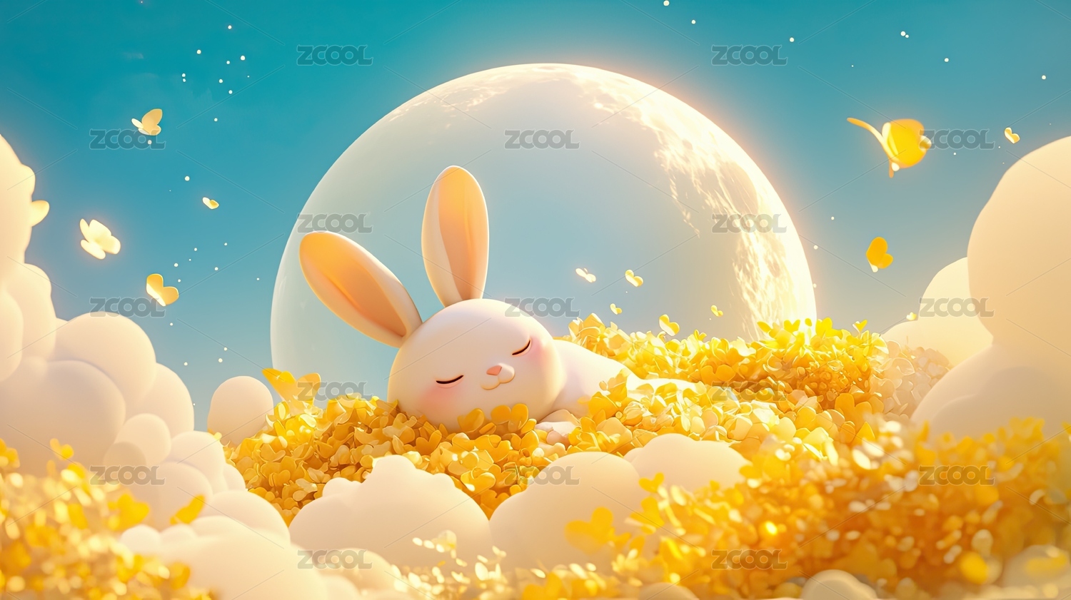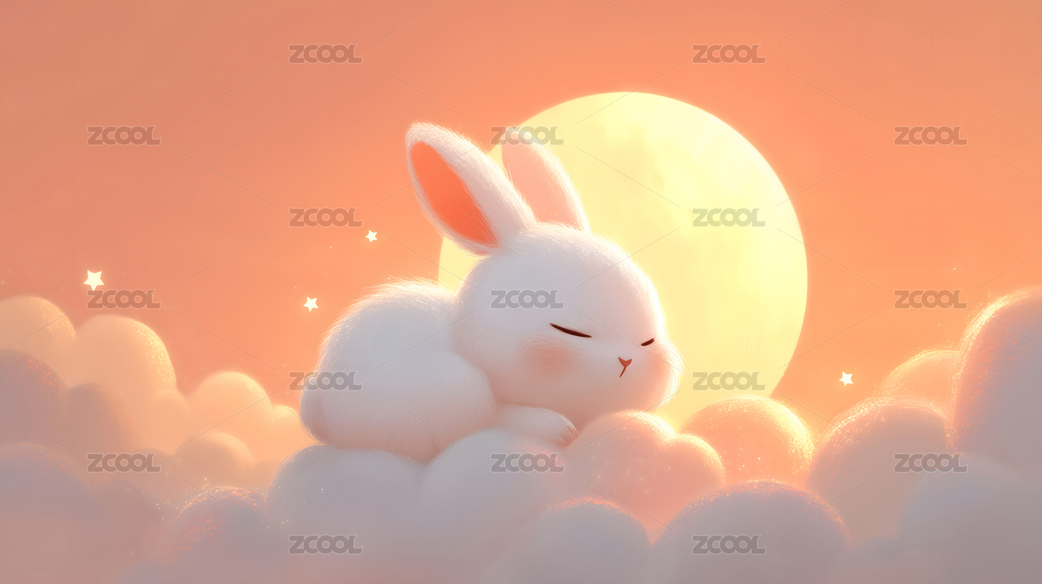 可爱兔子云端安睡月光下