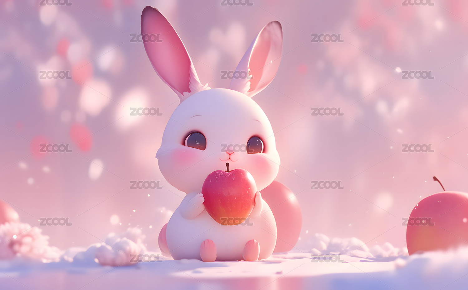小兔子和苹果3D壁纸