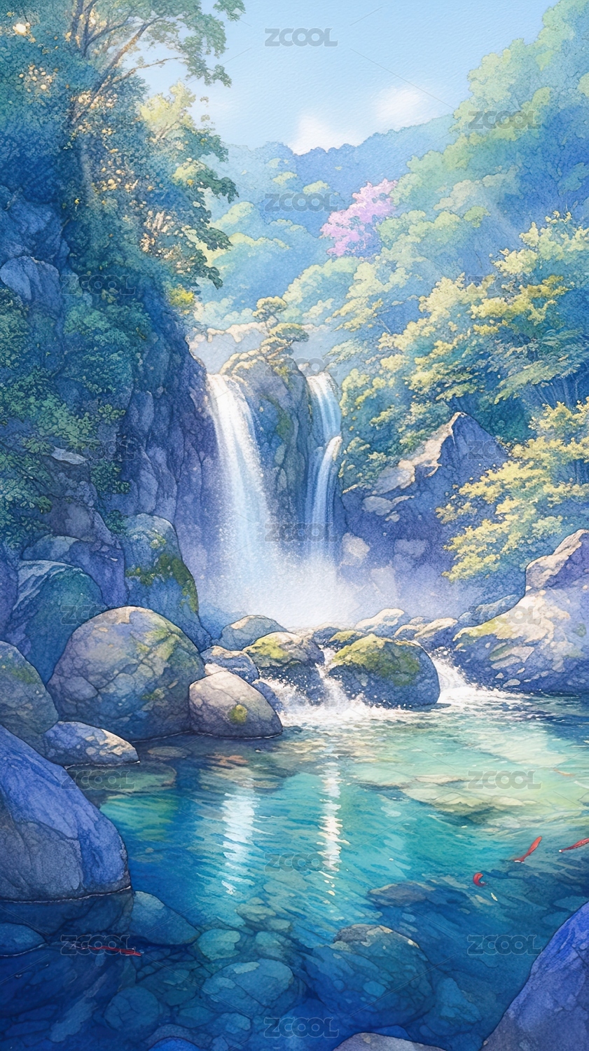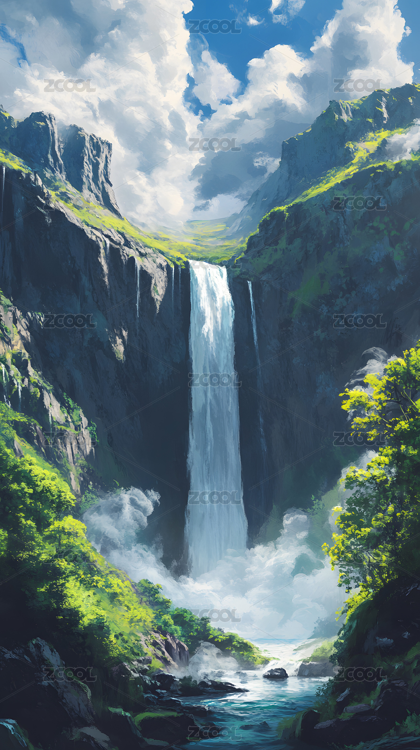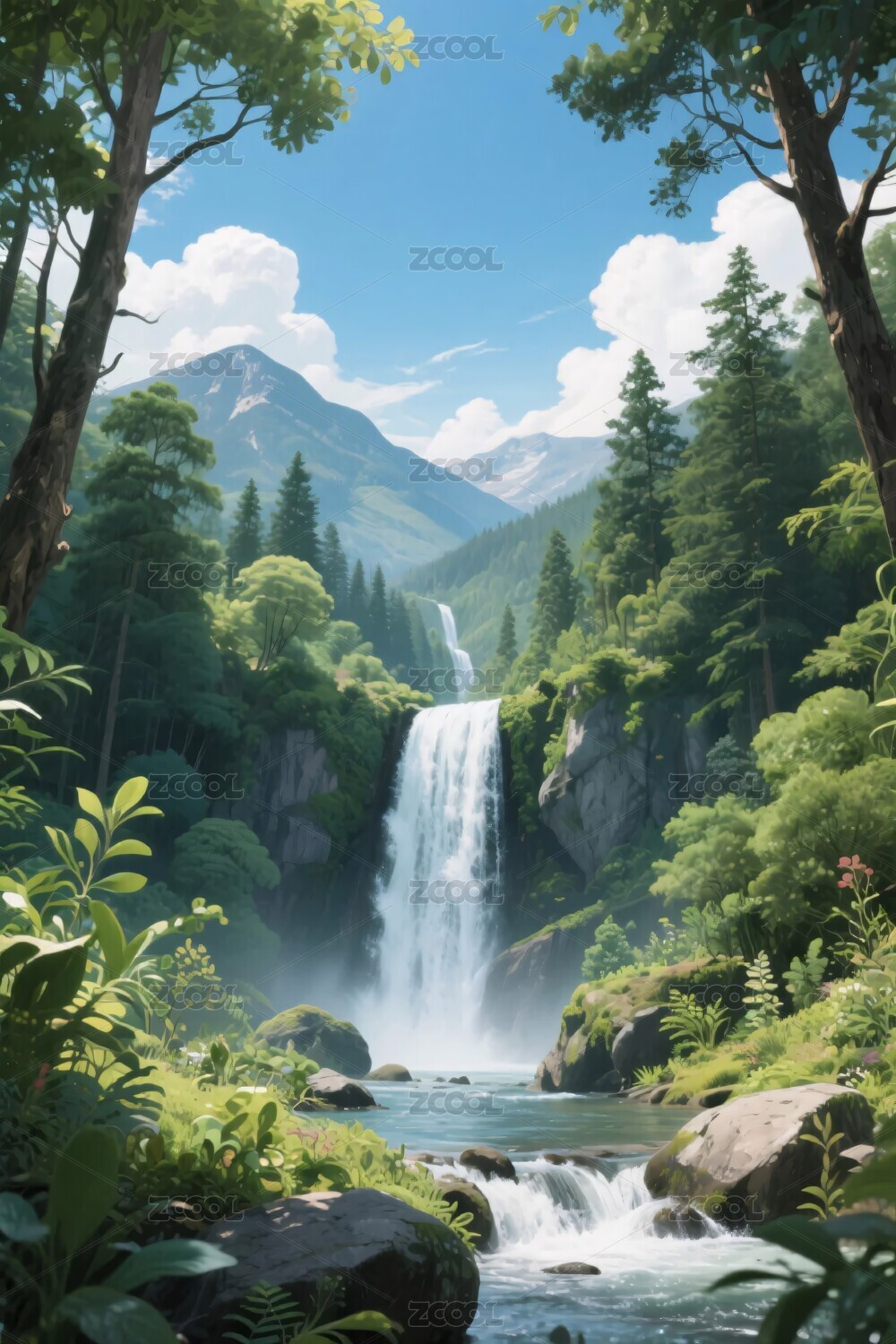 夏季绿色阳光鸟瞰热带野生森林和瀑布