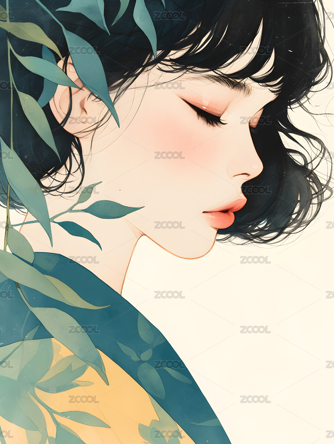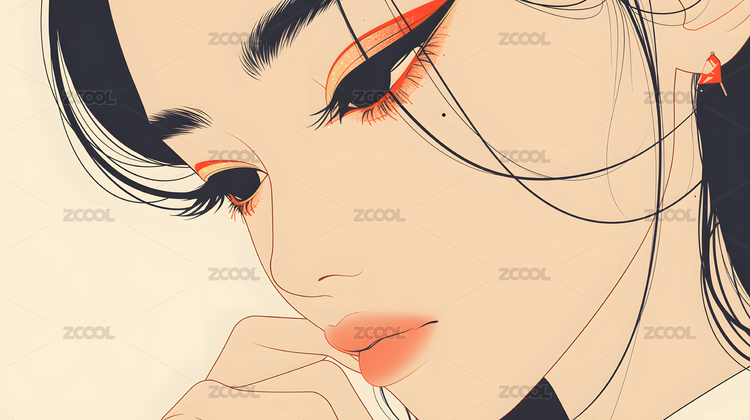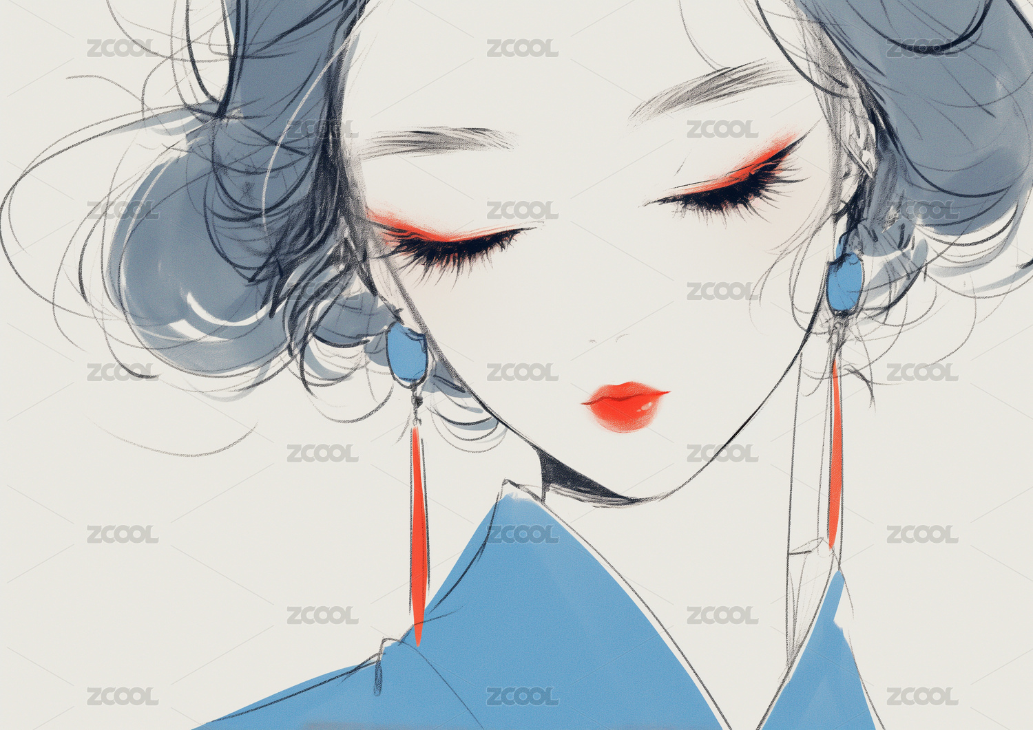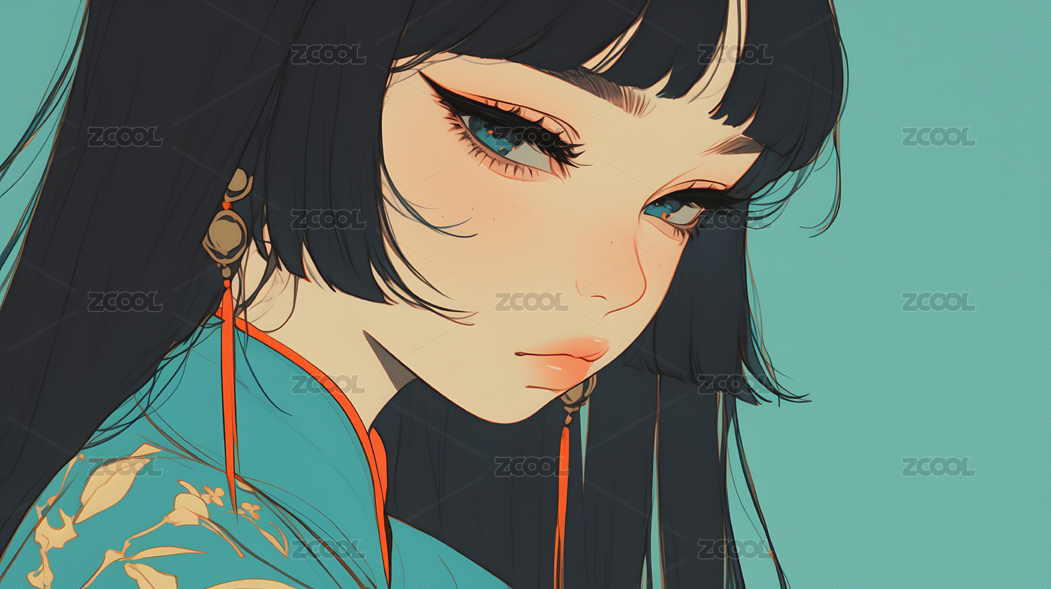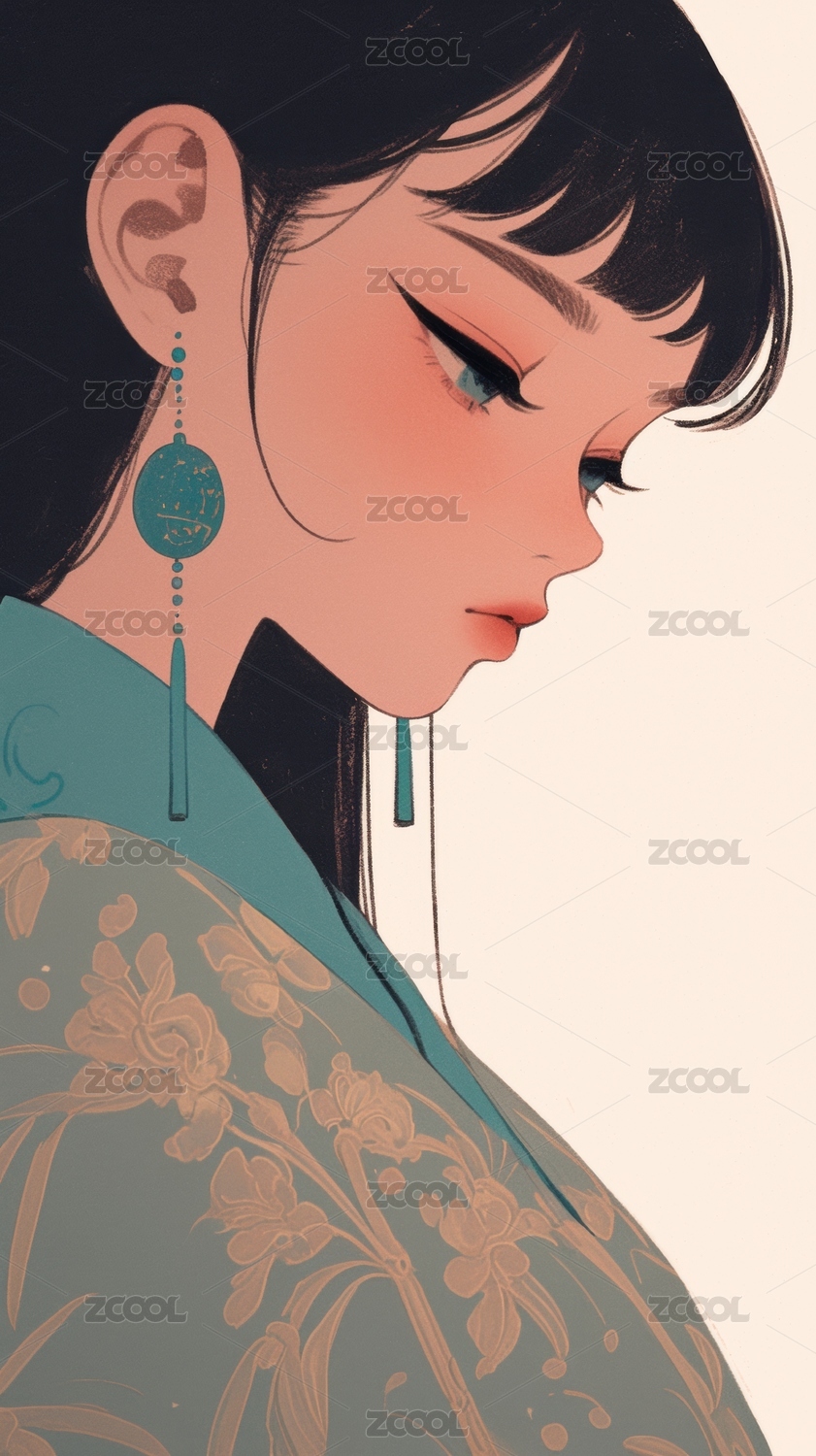 AIGCFG,中式,中国风,国潮风,插画,卡通,美女,人
