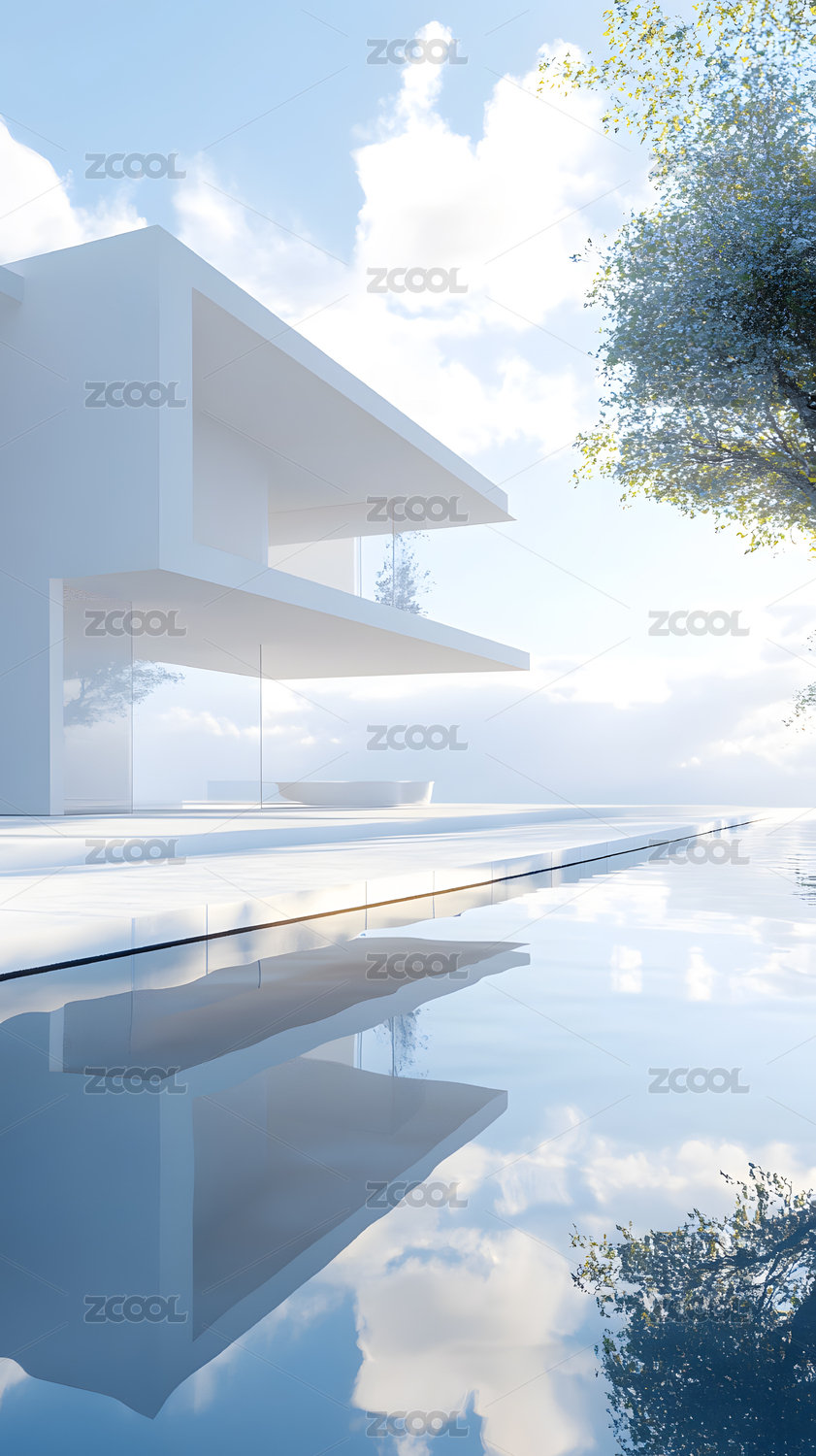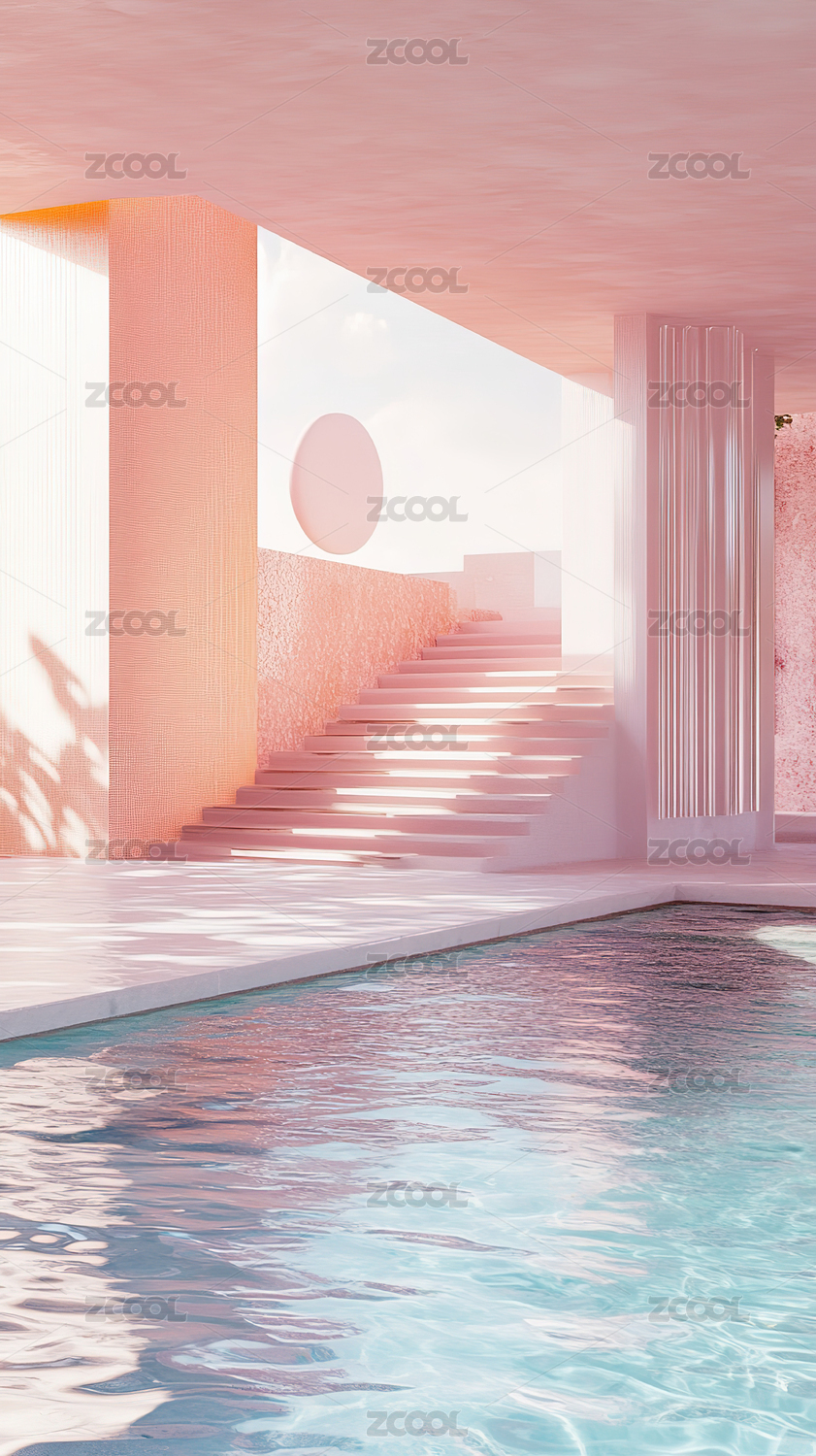 科技科幻未来夜晚彩色住宅建筑3D赛博插画