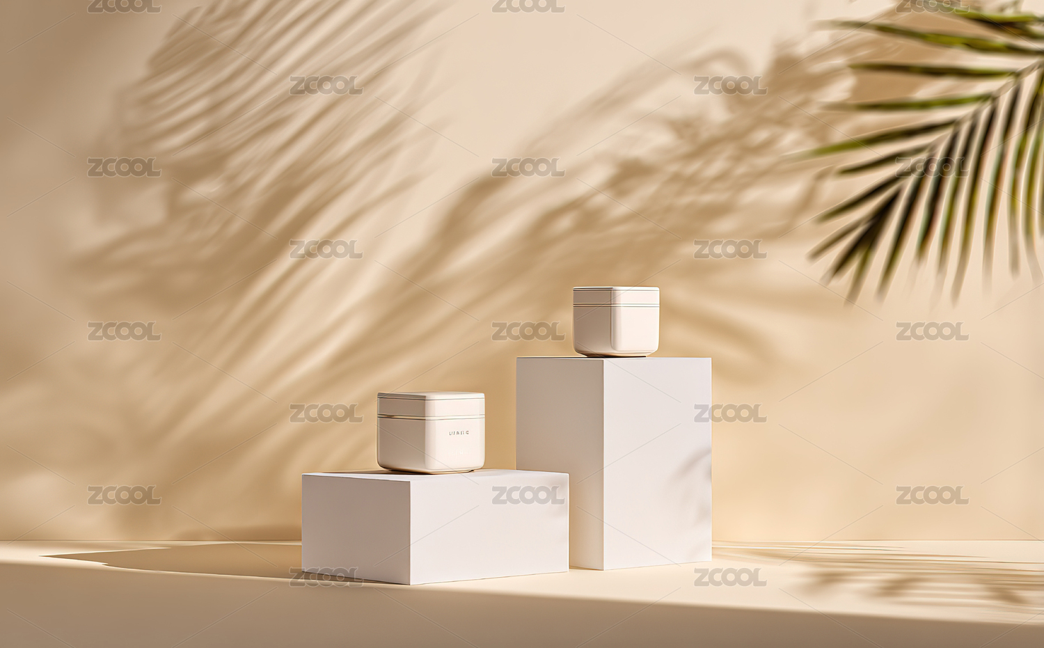 棕榈叶阴影下的精致护肤产品