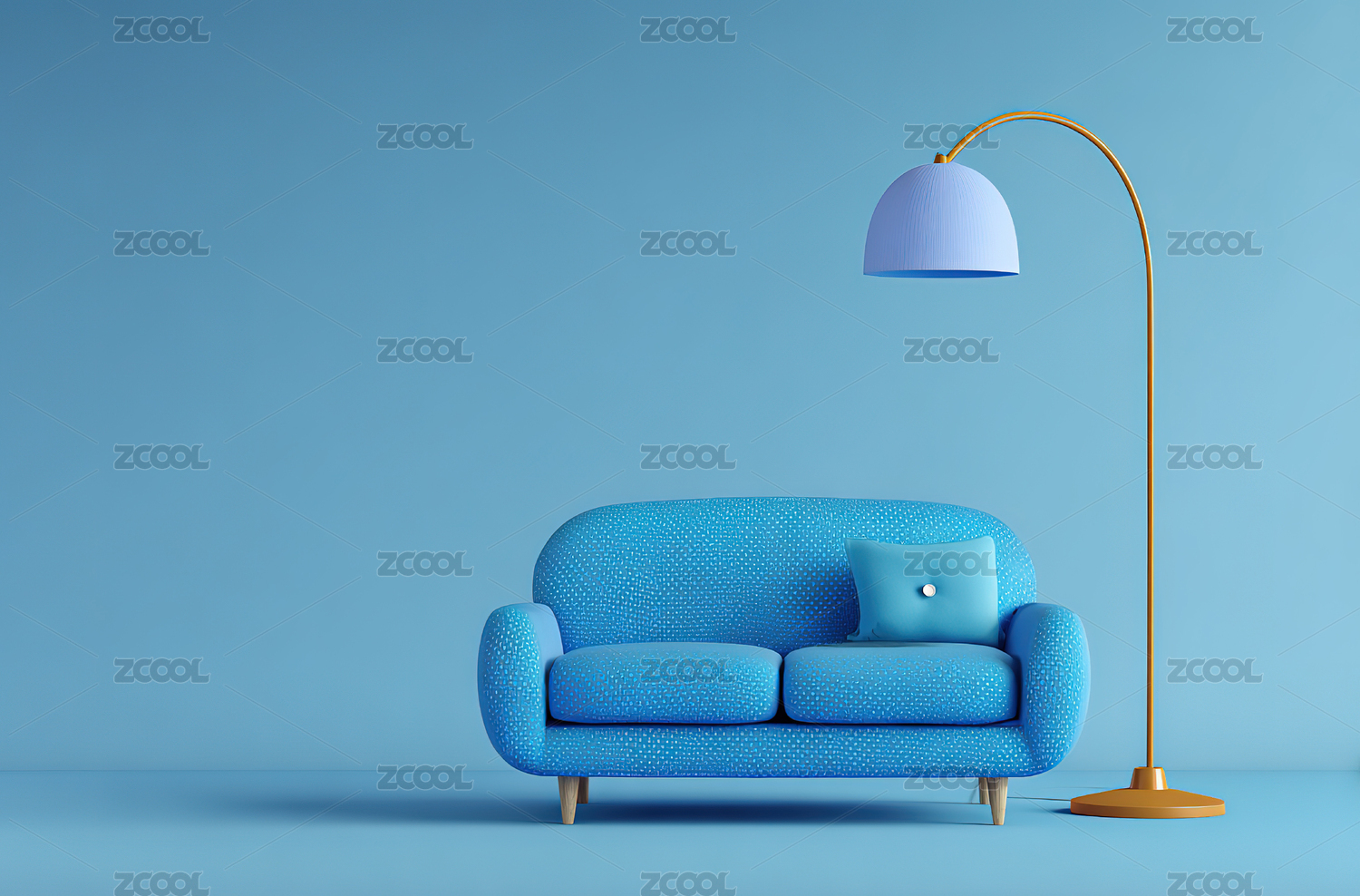 蓝色沙发与落地灯室内场景