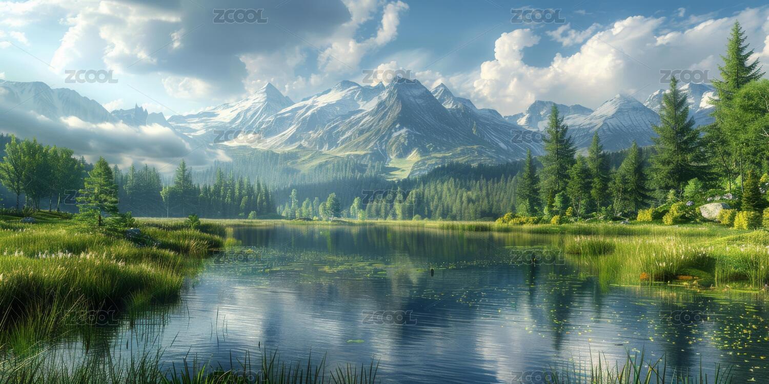雪山湖泊树林草地