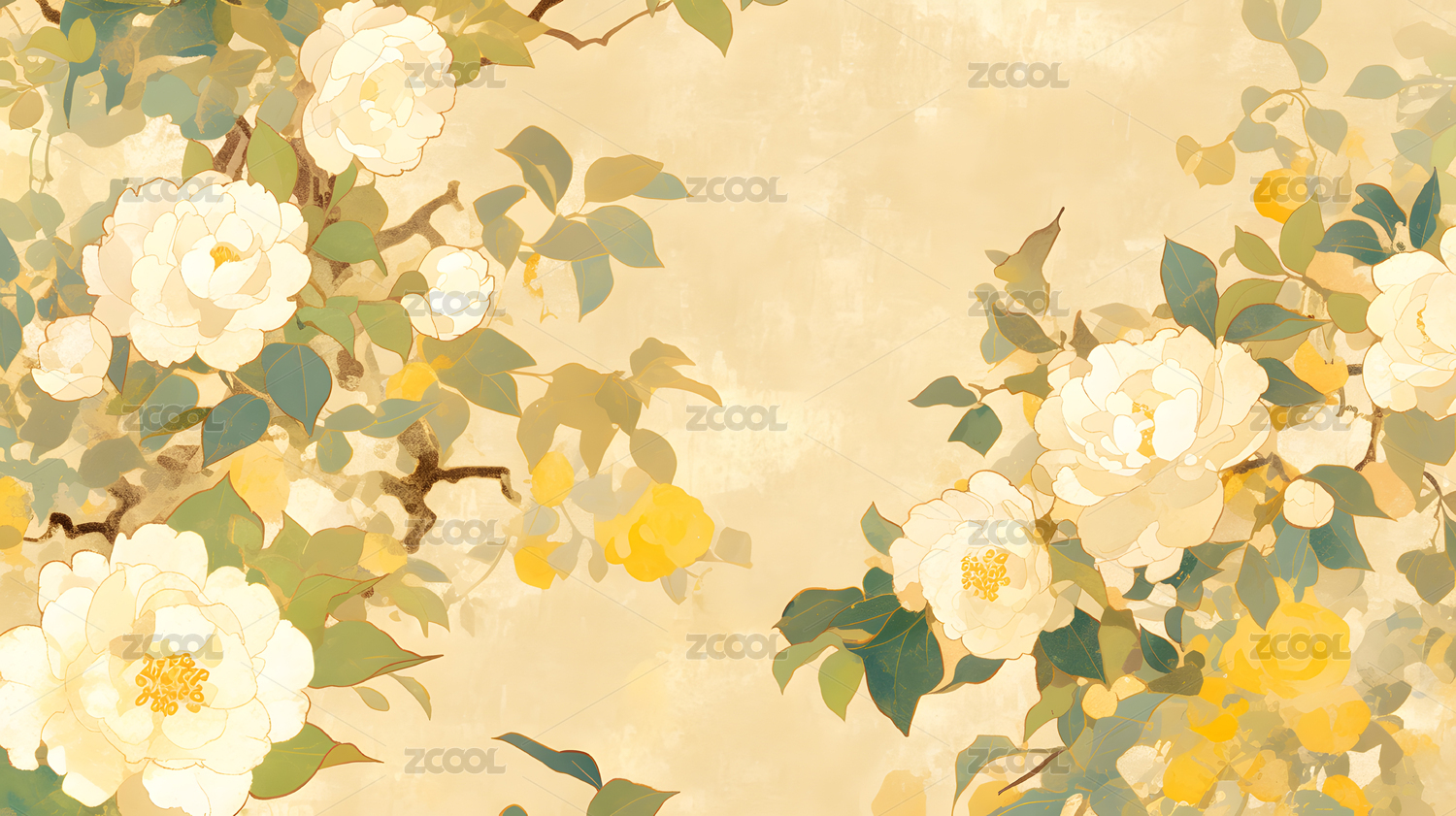 AIGCFG01,插画,浮世绘,鲜花,花朵,花,植物,芍药,牡丹