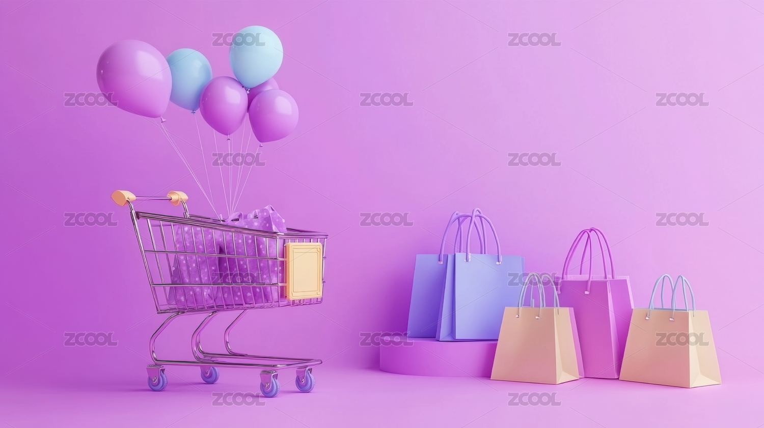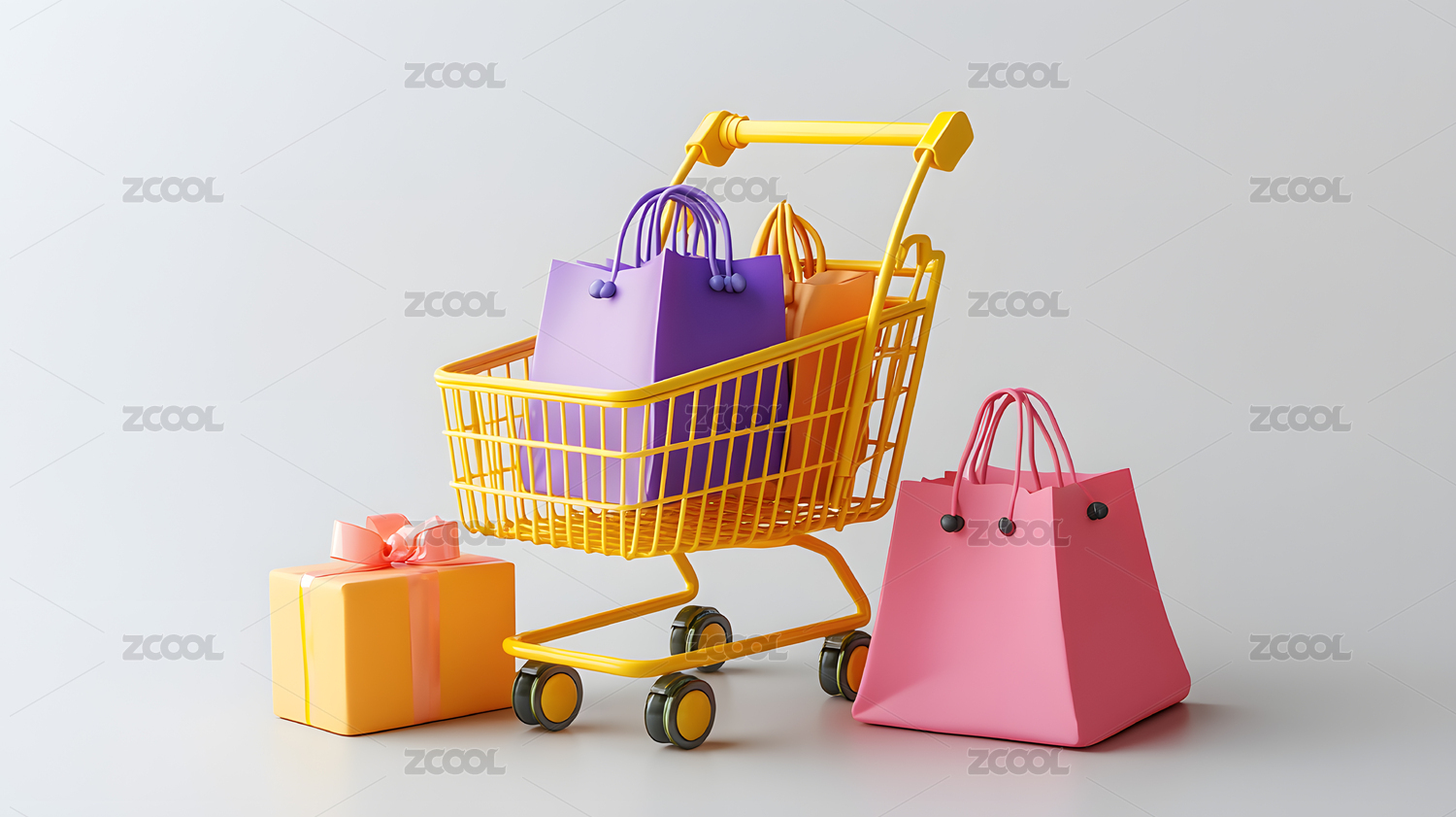 购物节,购物车,3D,卡通,插画,购物袋,商品,购买,DXCZ202401