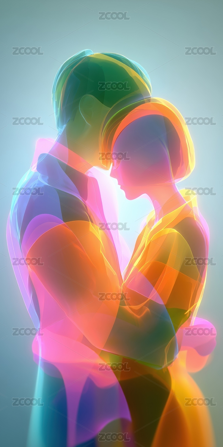 色彩恋人剪影