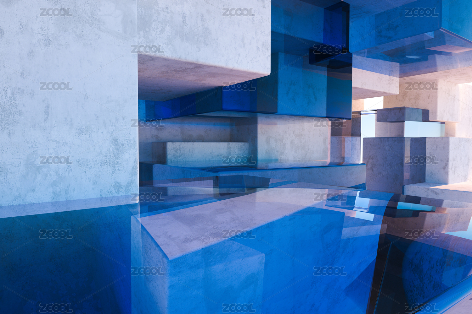 蓝色现代建筑内部空间