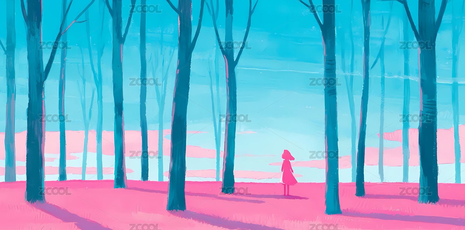 树林,小女孩,浪漫,清新,插图,蓝色,梦幻,青春