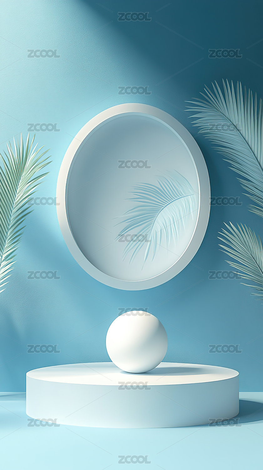蓝色背景下的树叶和圆形图案