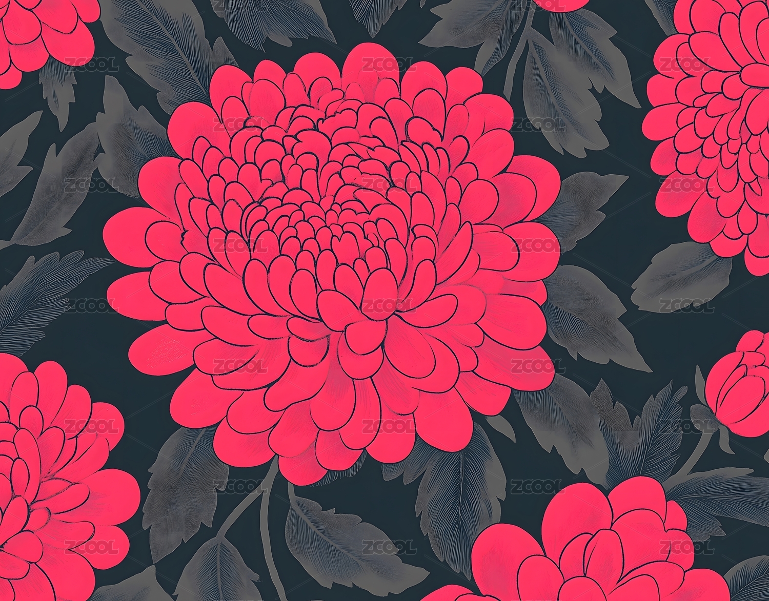 菊花,花苞,重阳,寒露,秋天,中国风,简约,花卉,国潮,无缝图