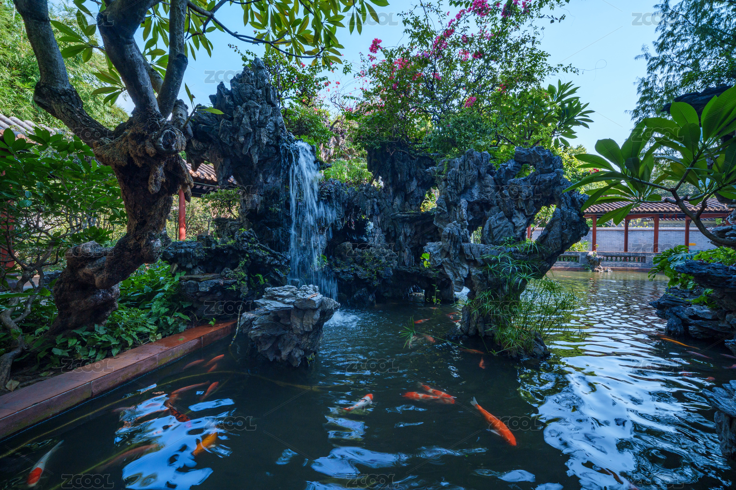 佛山顺德清晖园中式传统岭南园林假山瀑布