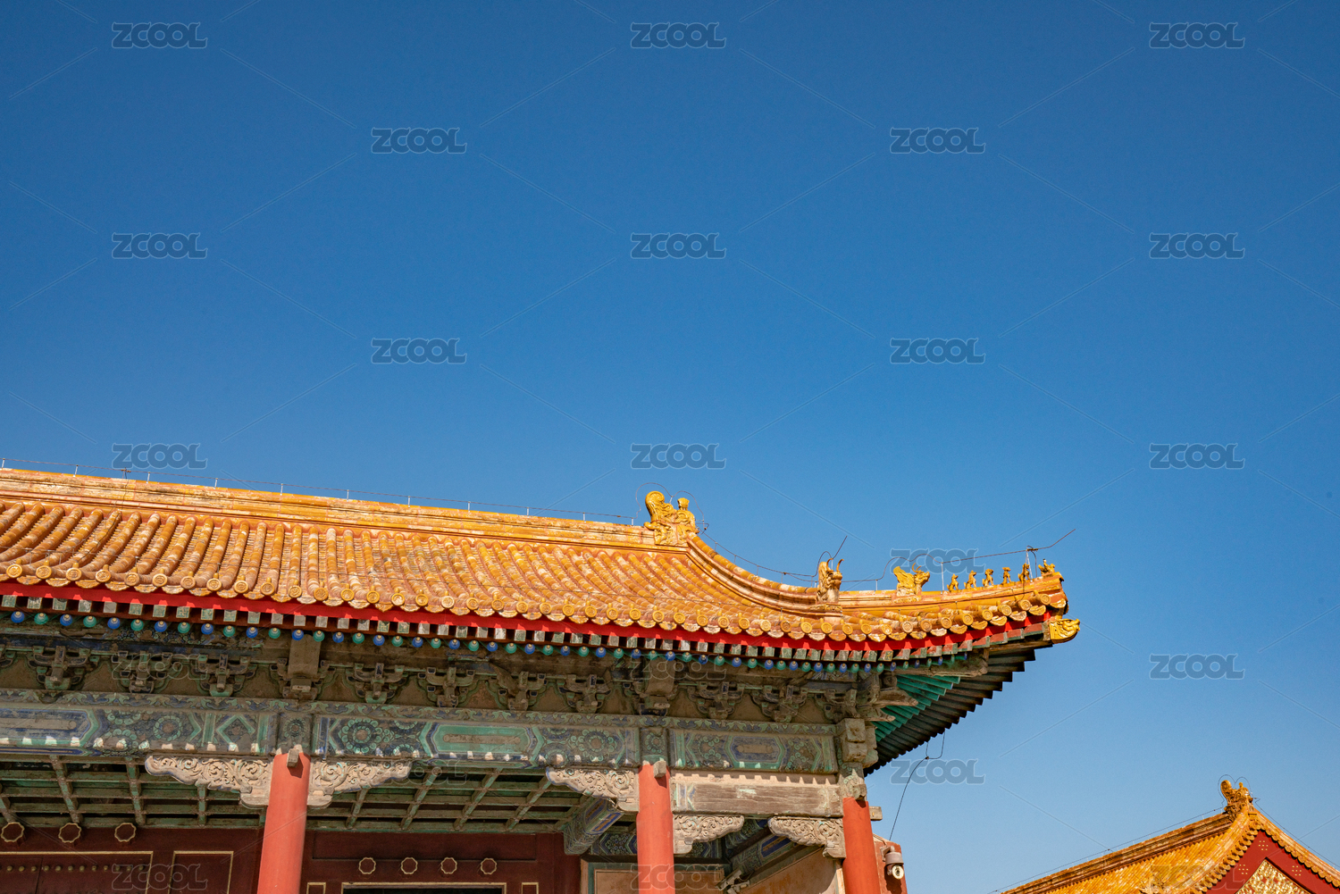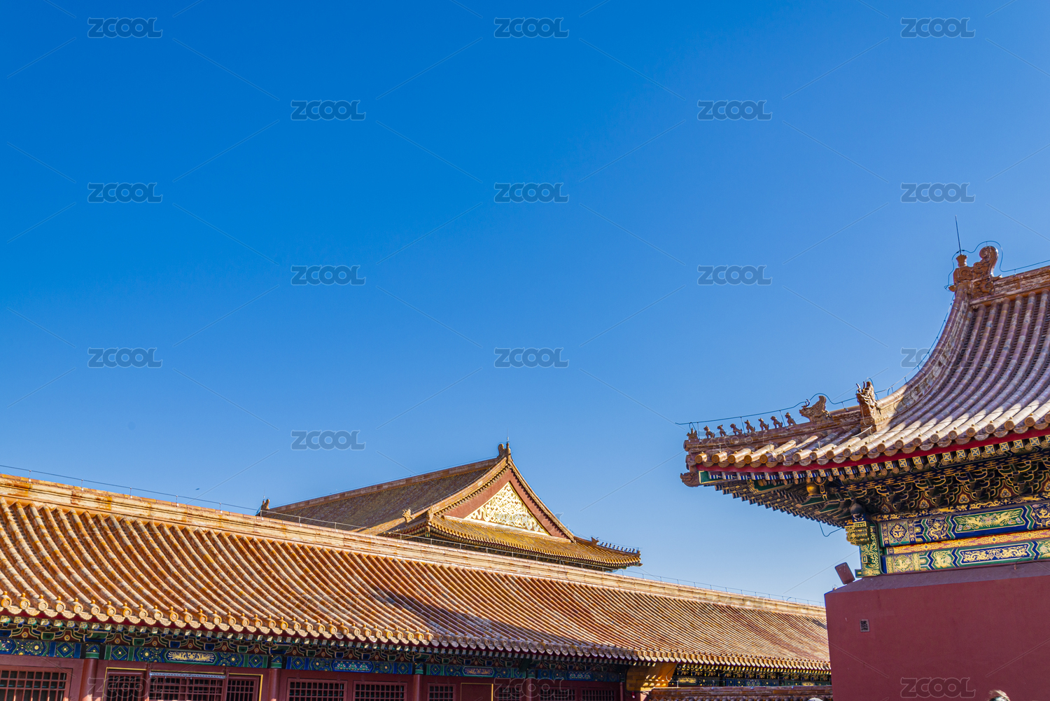 蓝天下的中国北京故宫博物馆的古宫殿建筑
