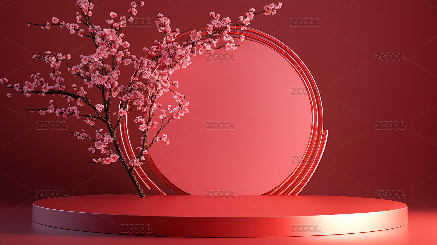 红色背景下的圆形展示台