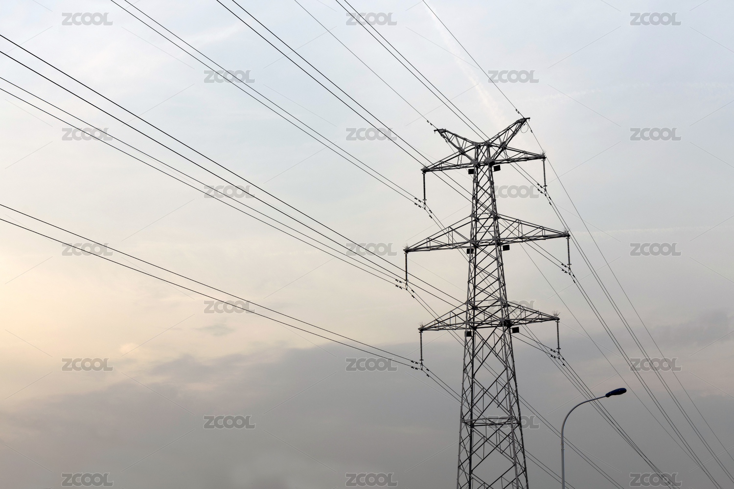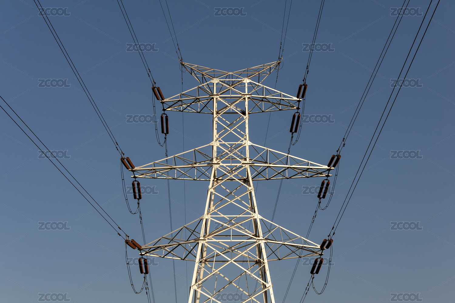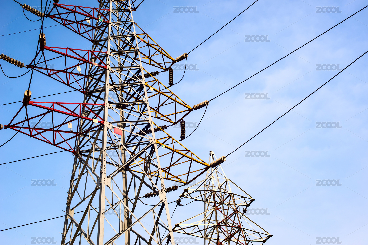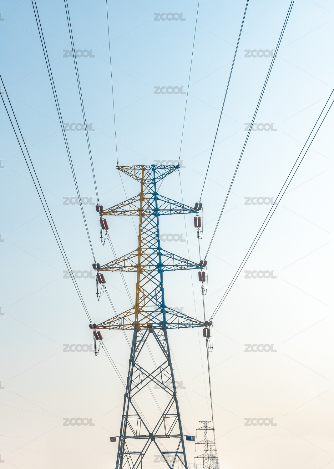 高压,电线,杆,线,蓝色,青色,黄色,高,供电,系统