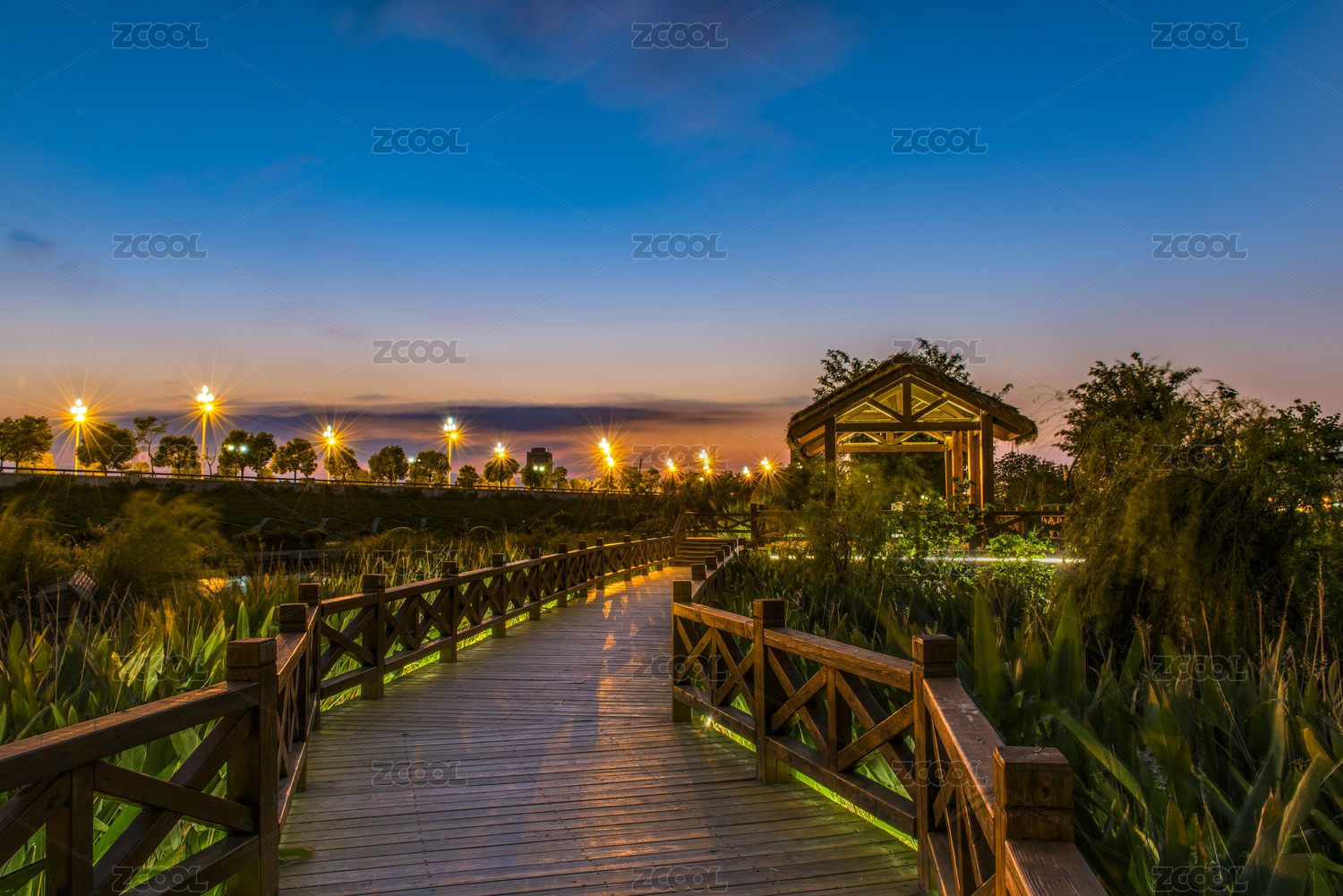 天津官港森林公园里的野鸭观鸟休闲栅栏步道
