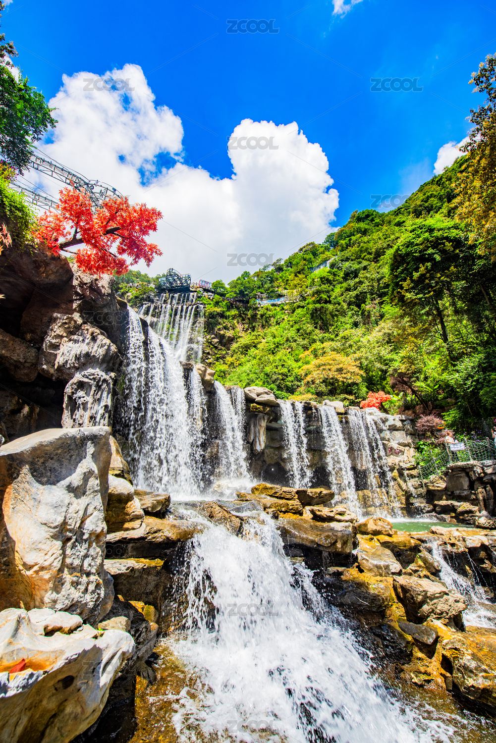广东清远古龙峡古龙瀑布的夏日晴天美景
