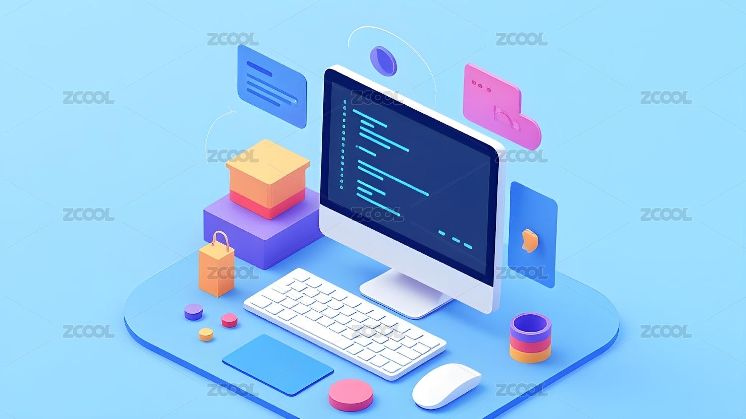 电脑办公平面插画背景