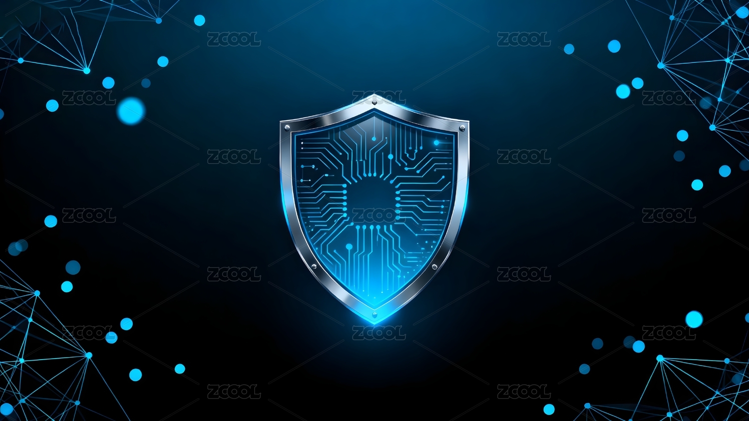 蓝色的科技盾牌,互联网金融财产安全插画保