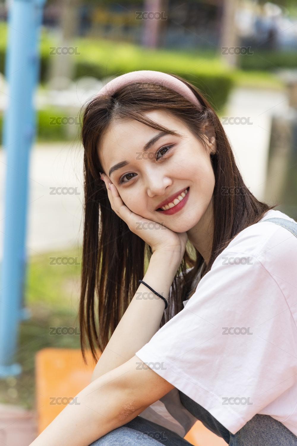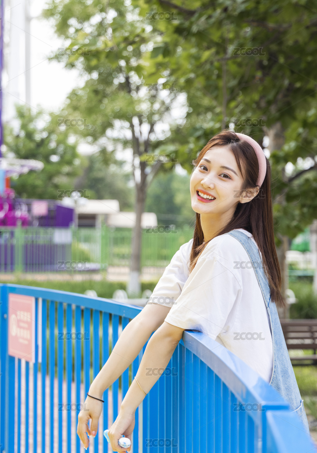 穿着白色连衣裙在公园游玩的亚洲女孩
