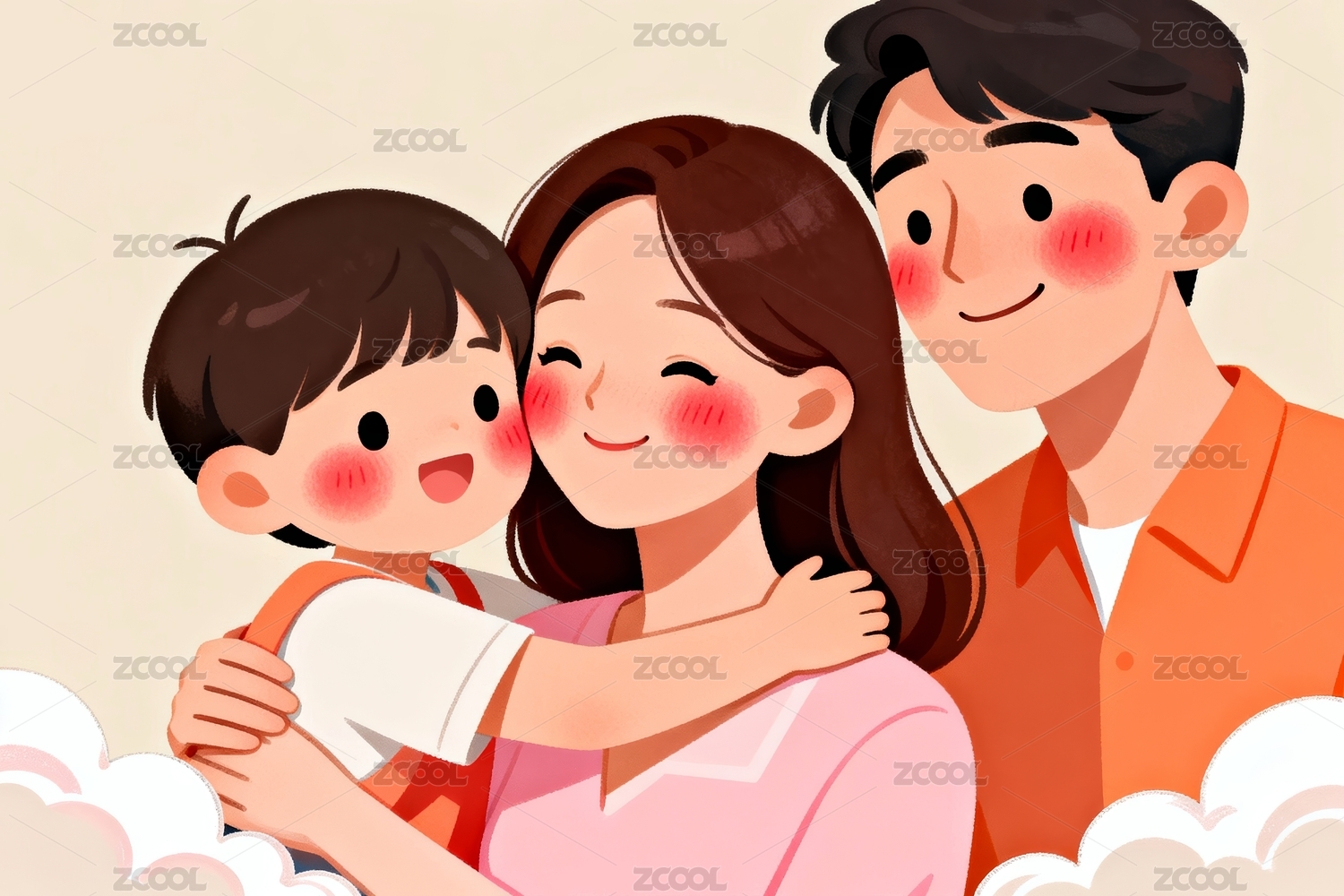 母亲节母子拥抱幸福快乐庆祝节日3D插画